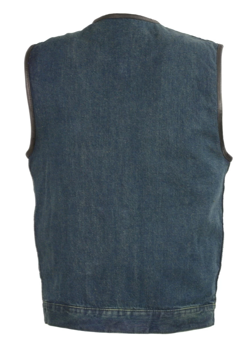 Club Vest CV3004LT Men’s Blue Denim Collarless Vest with Concealed Snaps, Hidden Zipper and Gun Pockets