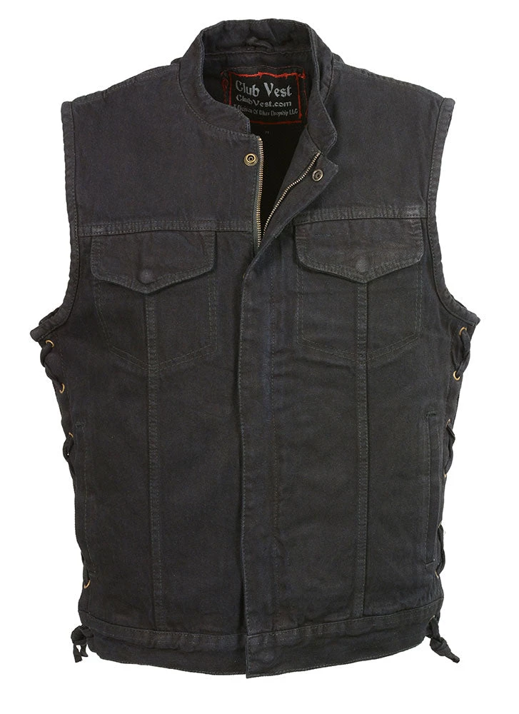 Club Vest CVM3002 Men’s Classic Black Side Lace Denim Vest with Dual Front Closure and Inside Gun Pocketsb>