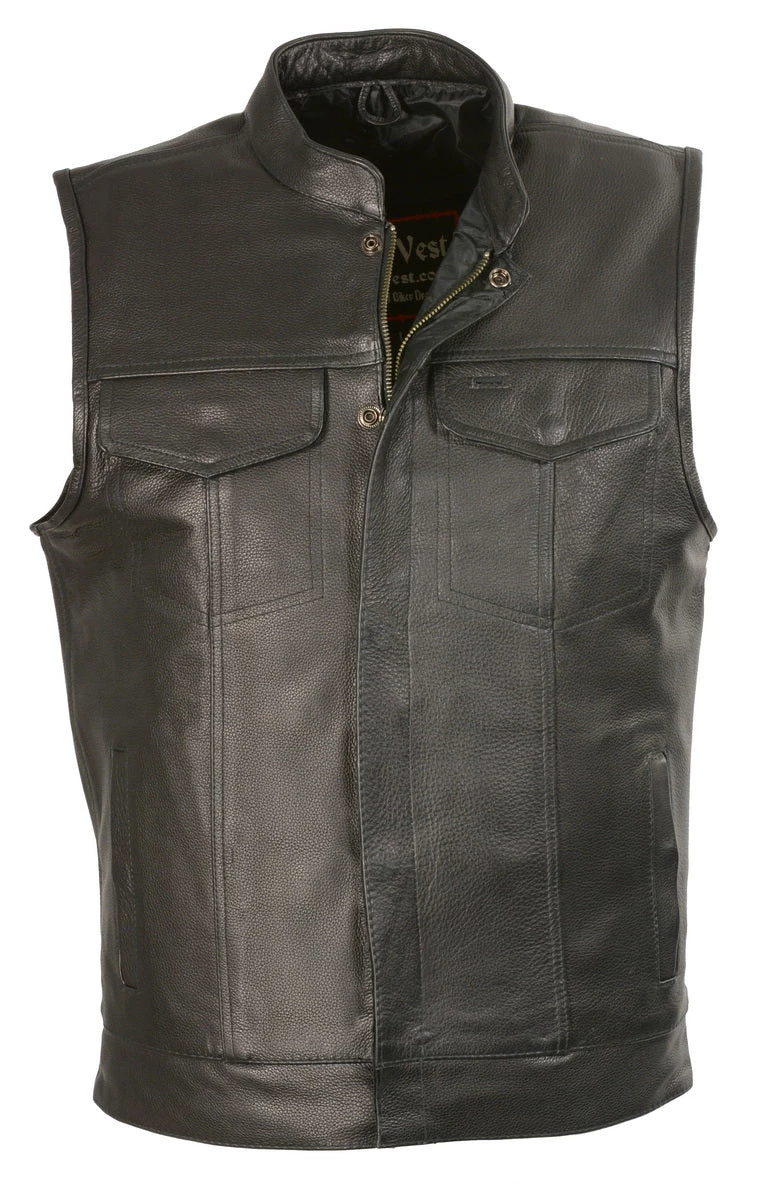 Club Vest CVM3510 Men’s Black Zipper Leather Vest with Seamless Back Design and Gun Pocketsb>