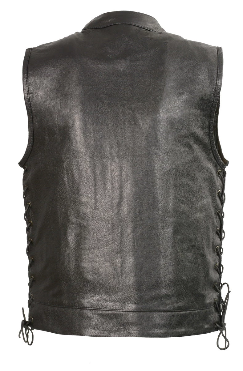 Club Vest CVM3712 Men’s Black Side Lace Leather Vest with Seamless Back Design and Gun Pockets