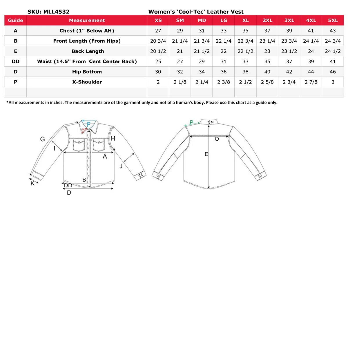 Milwaukee Leather MLL4532 Women’s Black ‘Cool-Tec’ Leather Open Neck Motorcycle Vest