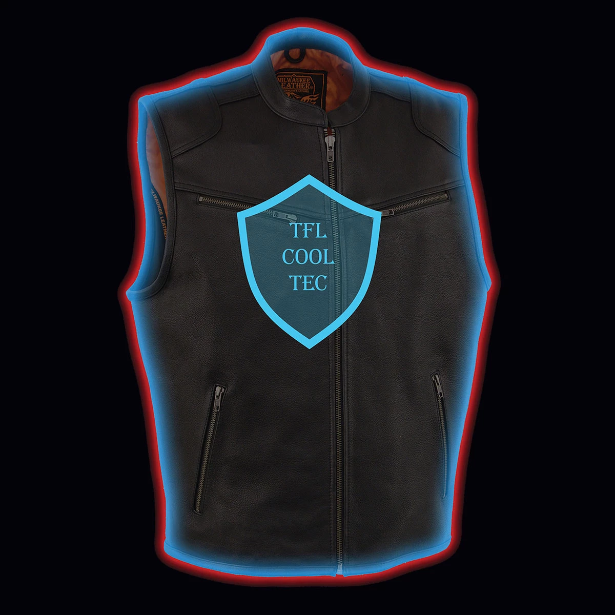 Designed for Maximum Cooling, If Wearing a Vest When It Is Sweltering Hot Just Doesn’t Sound Like Fun, The Milwaukee Leather Men’s Zipper Front Cool-Tec Leather Vest Fills the Gap, Giving You a Leather Surface Enhanced with The Revolutionary Cool-Tec Technology. The Vest Is Loaded with Storage Capabilities: It Has Two Zippered Chest Pockets, Two Lower Hand Warmer Pockets, An Interior Media/Cell Phone Pocket, And Dual Inside Pockets, Suitable for Concealed Weapon Carrying.