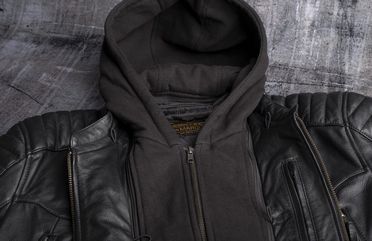 Cortech ‘The Marquee’ Mens Black Premium Leather Jacket With Removable Hoodie And SAS-TEC Armor Motorcycle Jackets
