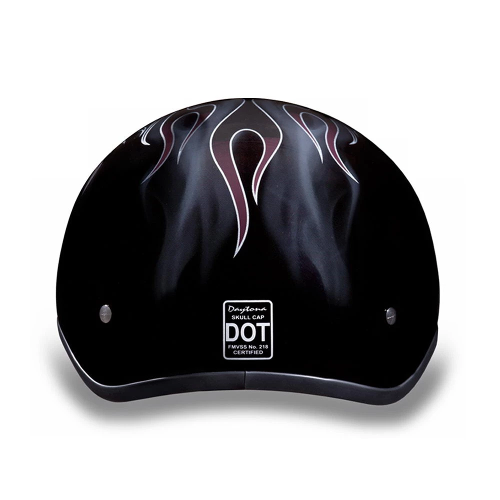 Our D.O.T. Daytona Slim Line Skull Cap 1/2 Shell Helmet in The Cross Bones Graphic, Meets And Exceeds D.O.T. FMVSS 218 Standards and Is The Smallest D.O.T. 1/2 Shell Helmet Ever Made!! With 3 Different Shell Sizes, You’re Sure to Get That Proportionate Fit!! Each Graphic Item Is Custom Designed and May Vary in Color or Composition. Available Without Snaps/Visor Only. Many More Colors and Designs Available Such as Soft Touch Dull Black, Hi-Gloss Black, White and Pink; Custom Colors: Black Cherry, Gun Metal Grey Metallic, Pearl White and Silver Metallic; Specialty Items: Carbon Fiber and Leather. Free Head Wrap and Cloth Draw String Bag Included. Sizes Range From 2XS-2XL.