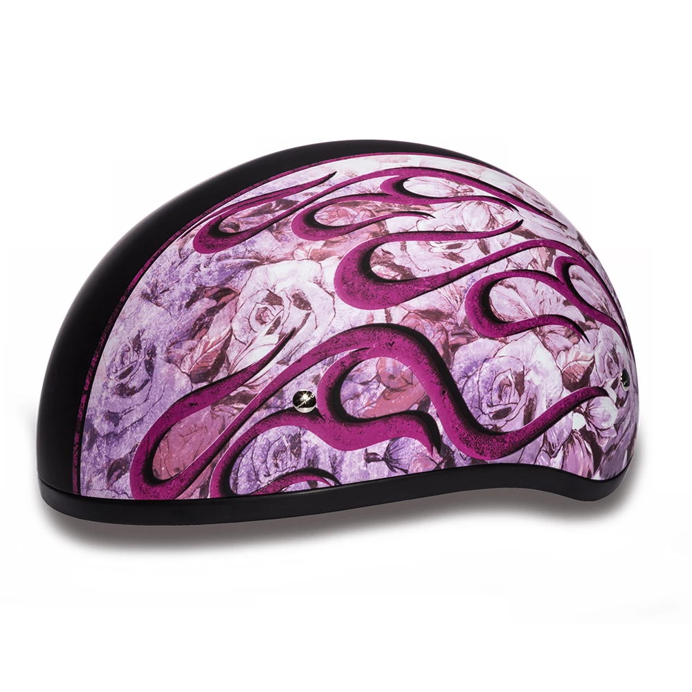 Daytona Helmets D6-FP ‘Skull Cap’ with Pink Flames Half Face Helmet