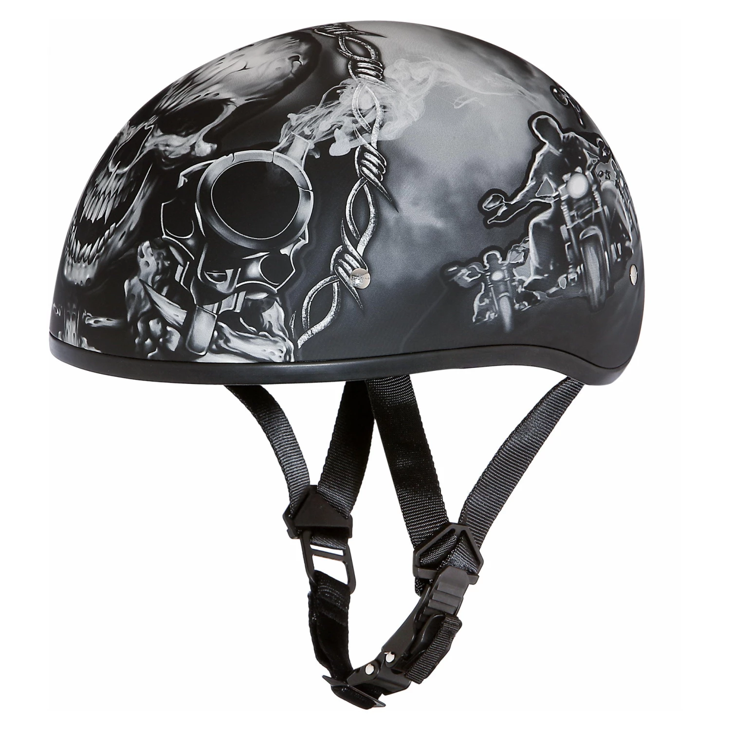 Daytona Helmets D6-G ‘Skull Cap’ with Skull and Guns Artwork Half Face Helmet
