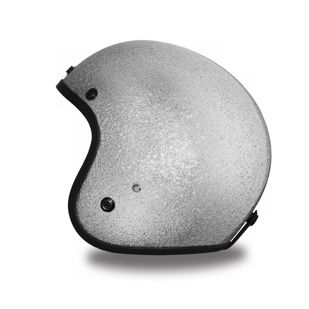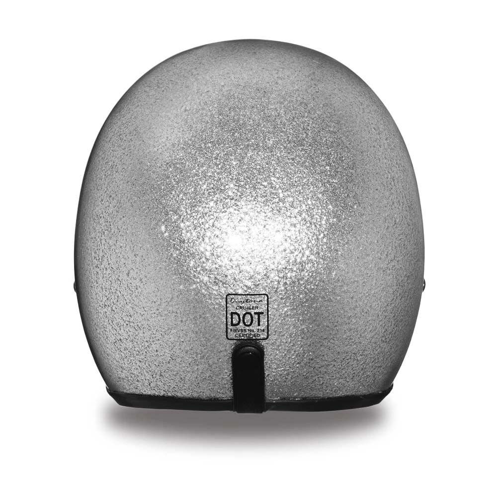 Our D.O.T. Daytona Cruiser 3/4 Shell Helmet in The Silver Metal Flake, Meets and Exceeds D.O.T. FMVSS 218 Standards and Is the Smallest D.O.T. 3/4 Shell Helmet Ever Made!! With 3 Different Shell Sizes, You’re Sure to Get That Proportionate Fit!! Available Only with Removable, Snap on Gloss Black Bubble Visor. Many More Colors and Designs Available Such as Soft Touch Dull Black, Hi-Gloss Black and White; Custom Colors: Gun Metal Grey Metallic; Specialty Items: Graphics. Free Head Wrap and Cloth Draw String Bag Included. Sizes Range From XS-2XL.