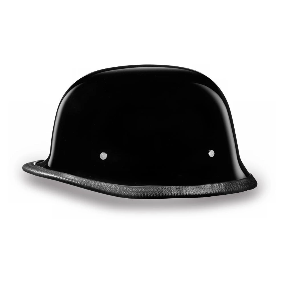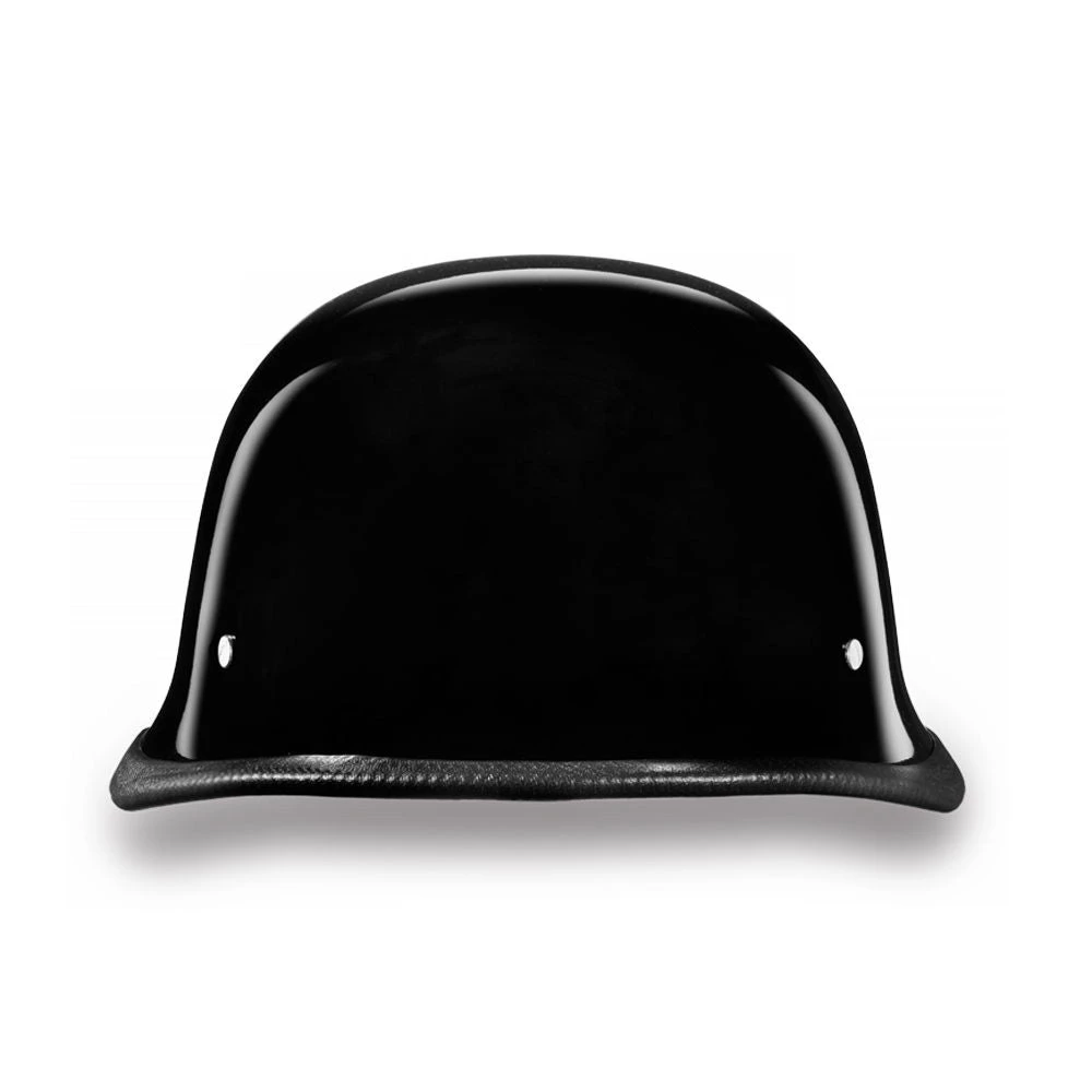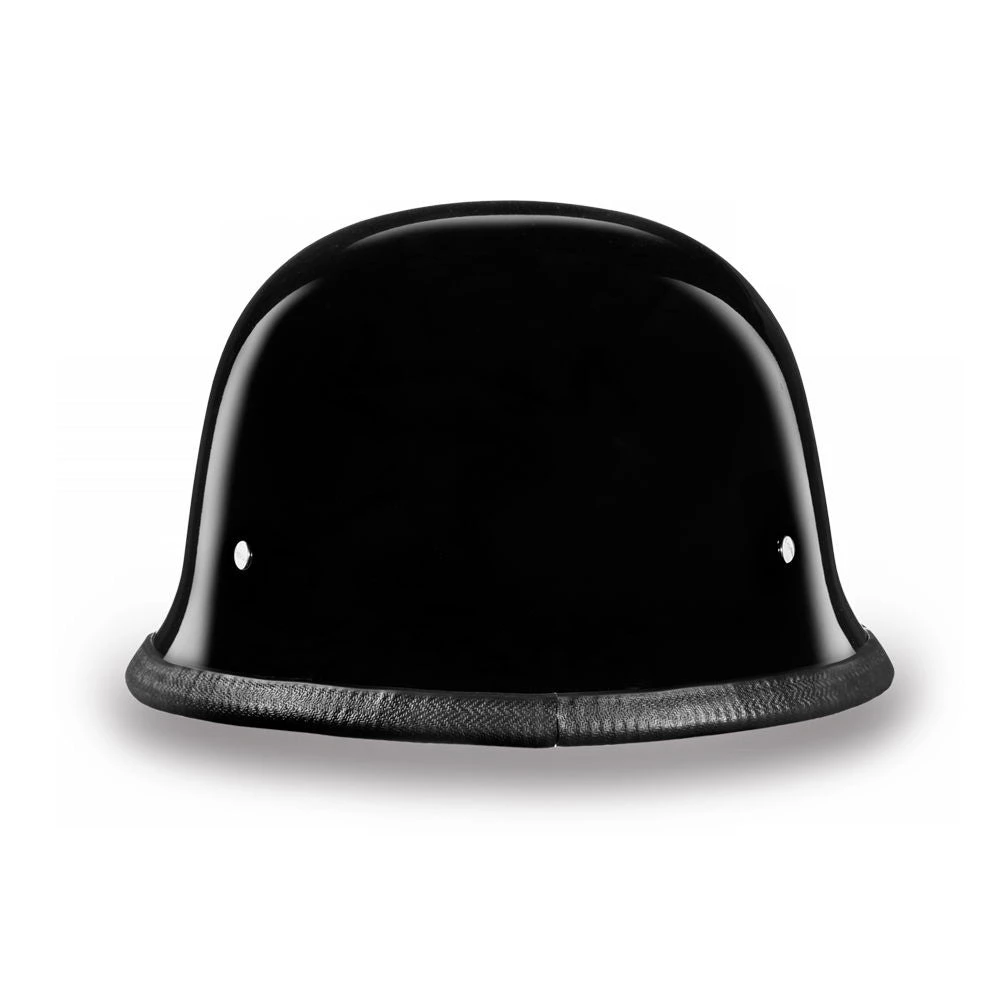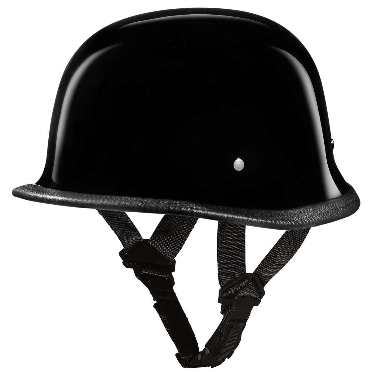Our D.O.T. Daytona German Helmet in The Soft Touch Dull Black Finish, Meets and Exceeds D.O.T. FMVSS 218 Standards. It Is Also Available in Hi-Gloss Black. Free Head Wrap and Cloth Draw String Bag Included. Sizes Range From XS-XL.
