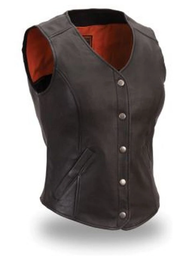 First Manufacturing FIL545CSL Women’s Black Extremely Stylish Long Length Cowhide Leather Motorcycle Vest