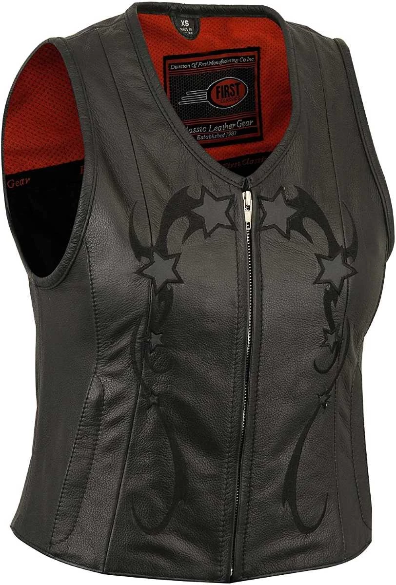 First Manufacturing FIL580CSL Women’s Black ‘Stardom’ Motorcycle Leather Vest