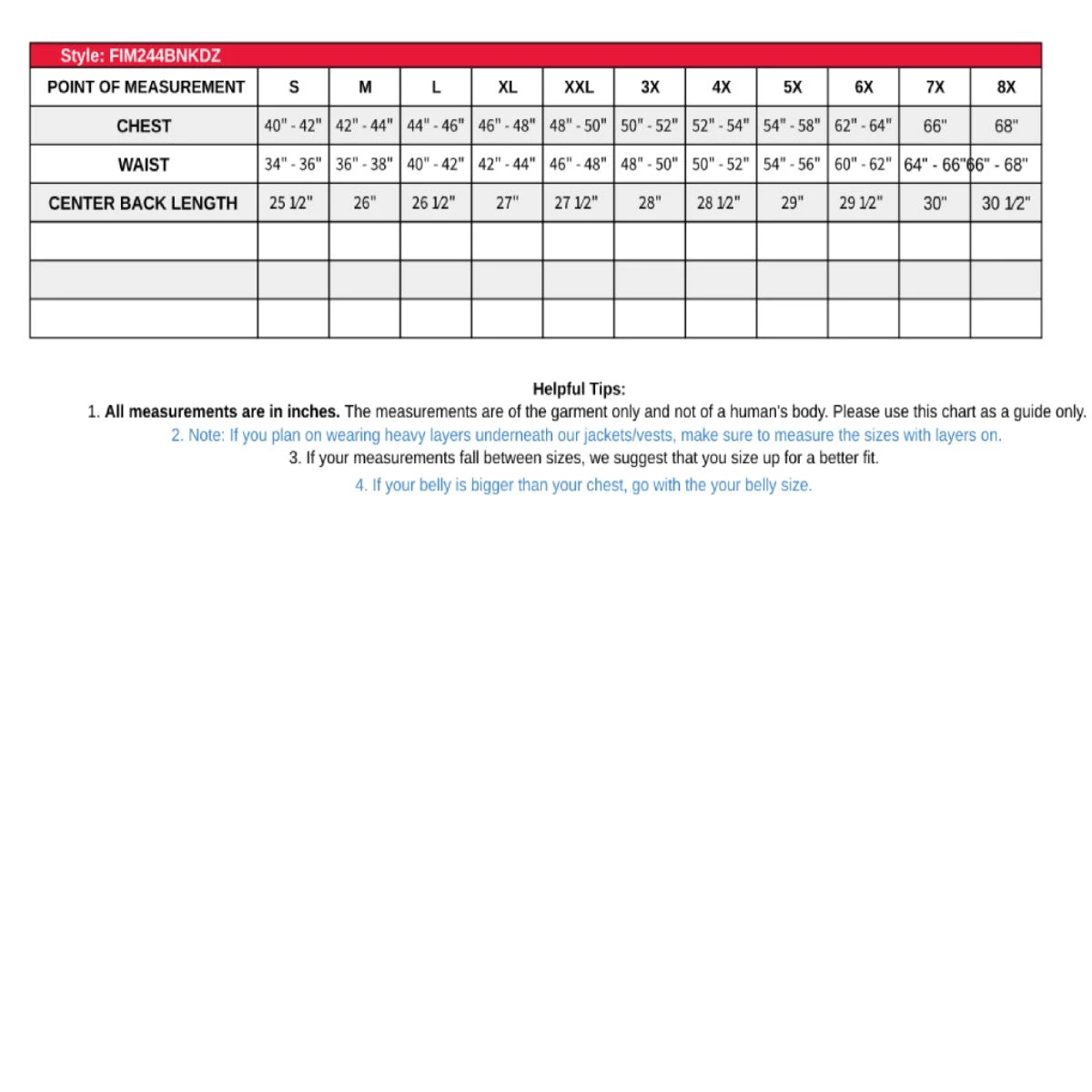 - Zippered sleeves with gussets