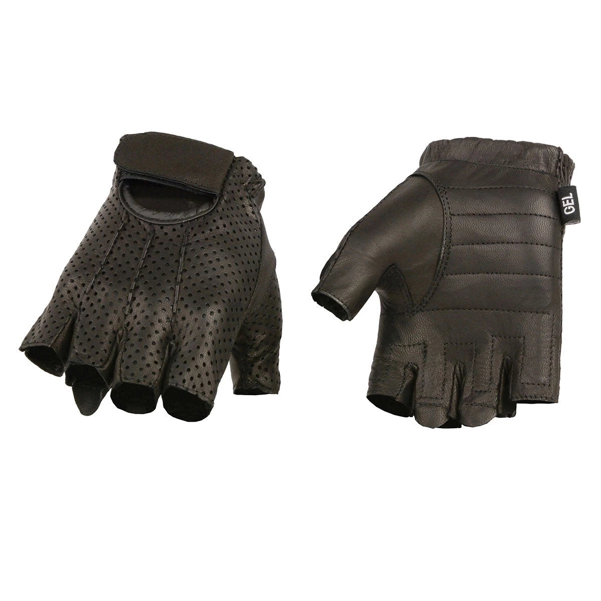 Men’s XG2090 Black Gel Palm Perforated Fingerless Biker Leather Gloves