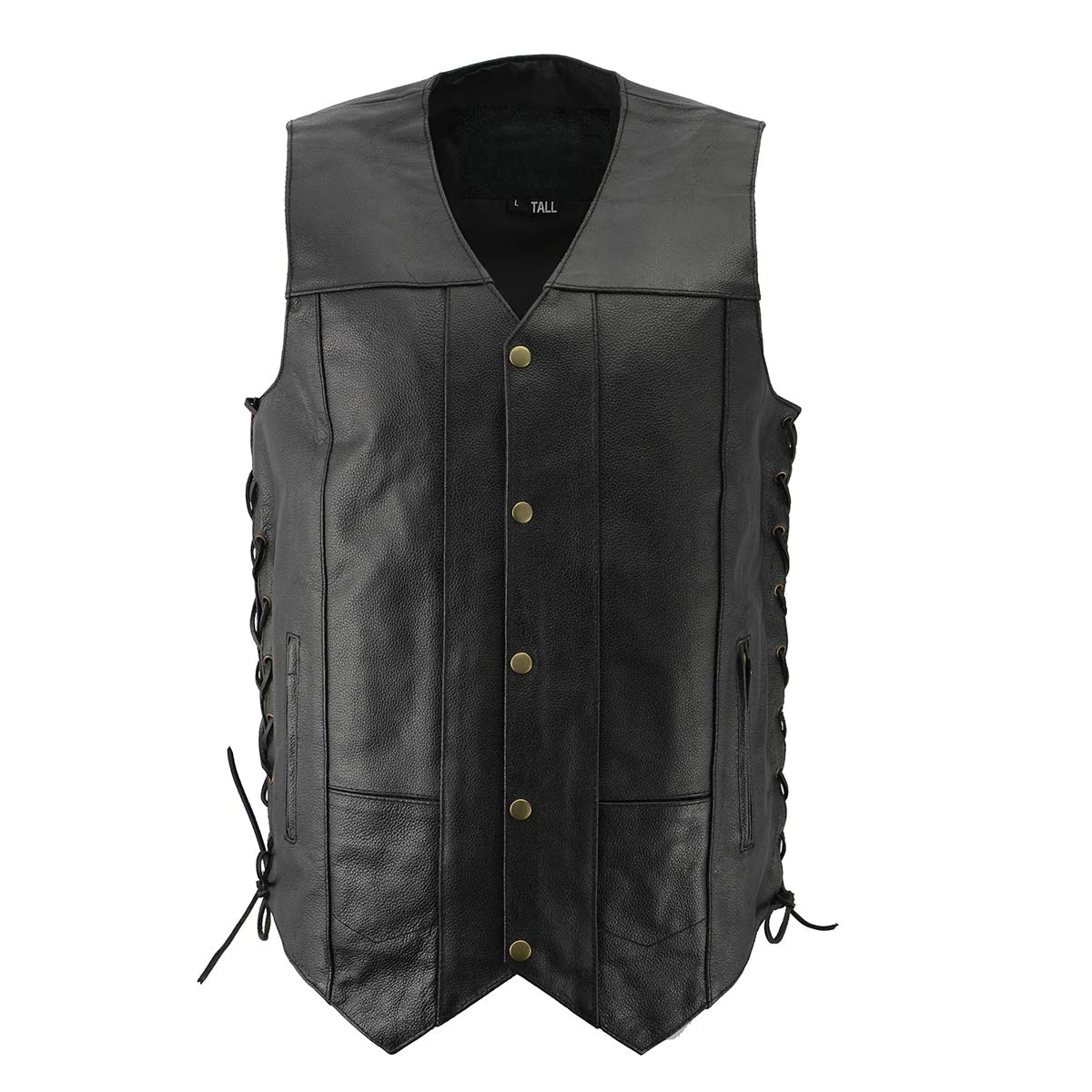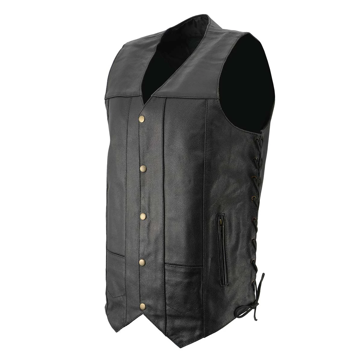 Men’s XS106 10-Pocket Classic Black Side Laced Biker Leather Vest
