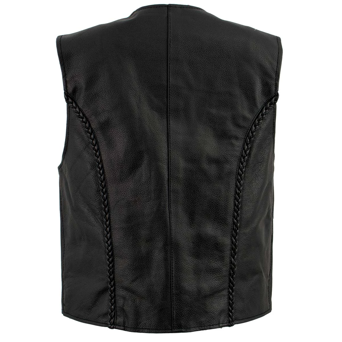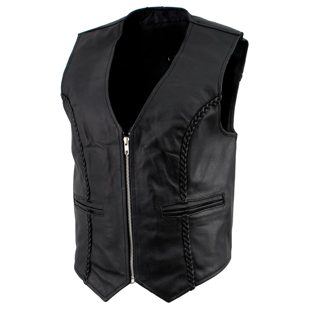 Ladies XS776 Black Braided Motorcycle Leather Vest with Zipper Closure