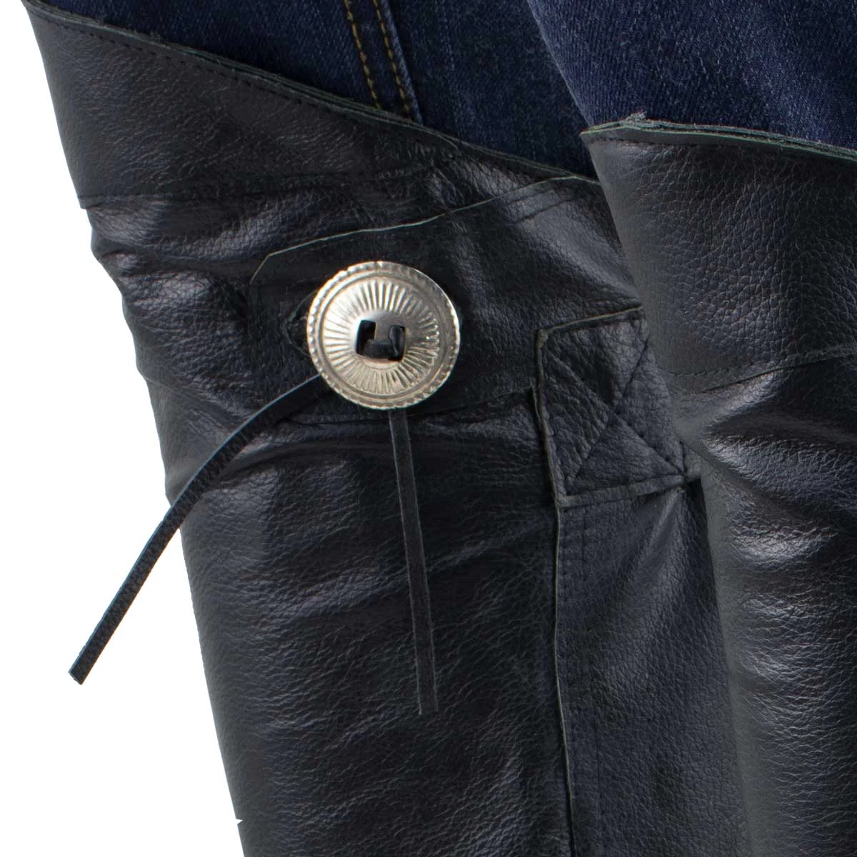 Genuine Leather SH1199FR Women’s Black ‘Fringed’ Leather Short Chaps with Conchos