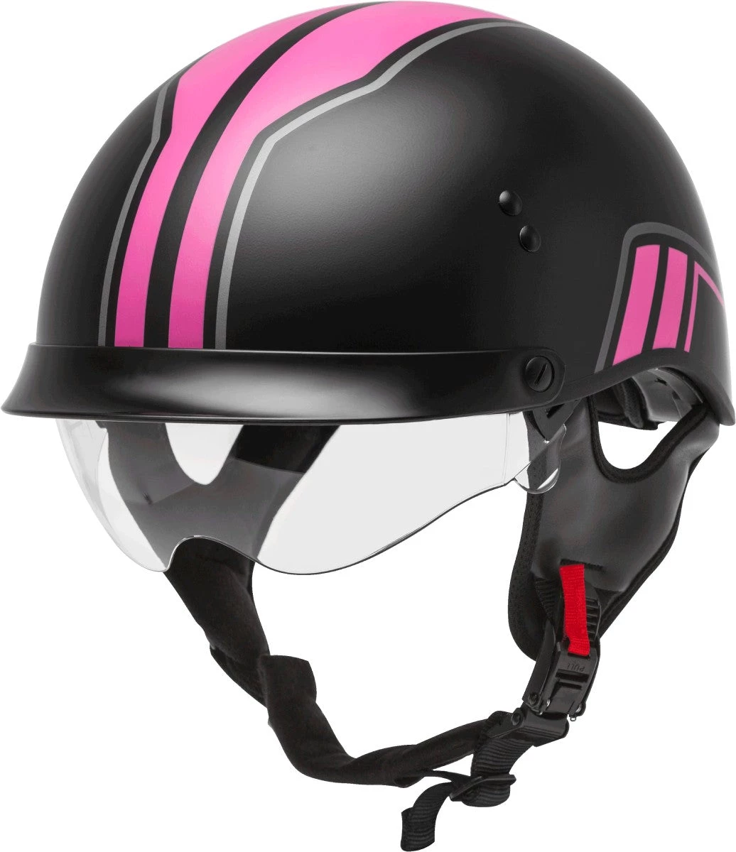 Gmax HH-65 Full Dressed Half Helmet Twin Matte Black And Pink Riding Gear