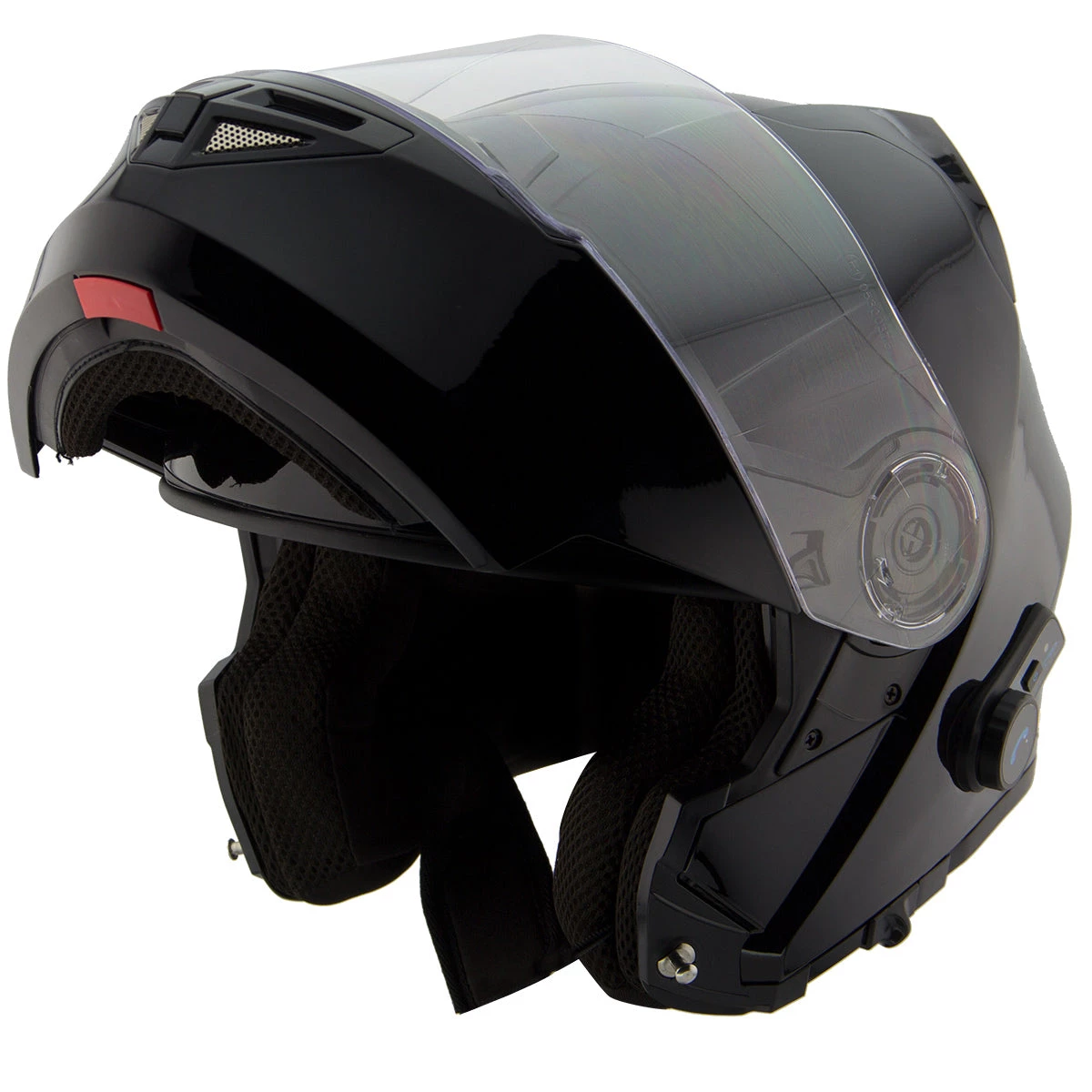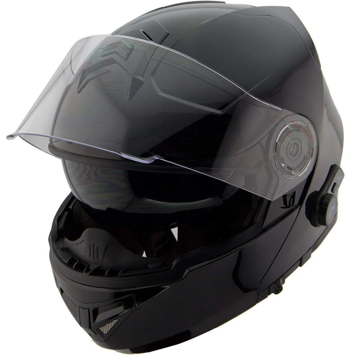 Hawk H-70 Gloss Solid Black Modular Motorcycle Helmet with Blinc-Bluetooth System