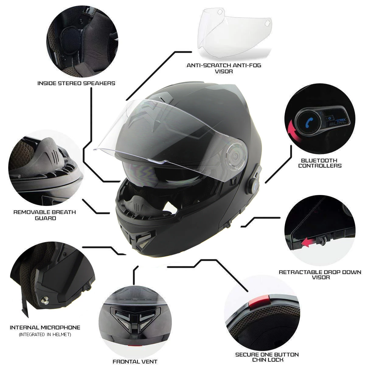 - Smooth Lock Drop Down Visor System: Retractable Drop-Down Internal Sun Visor. All with The Simple Flip of A Switch!