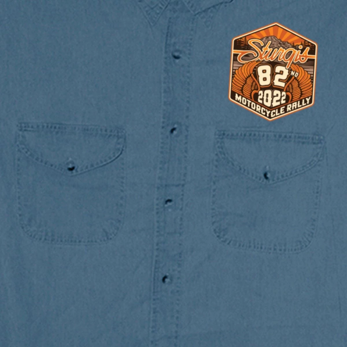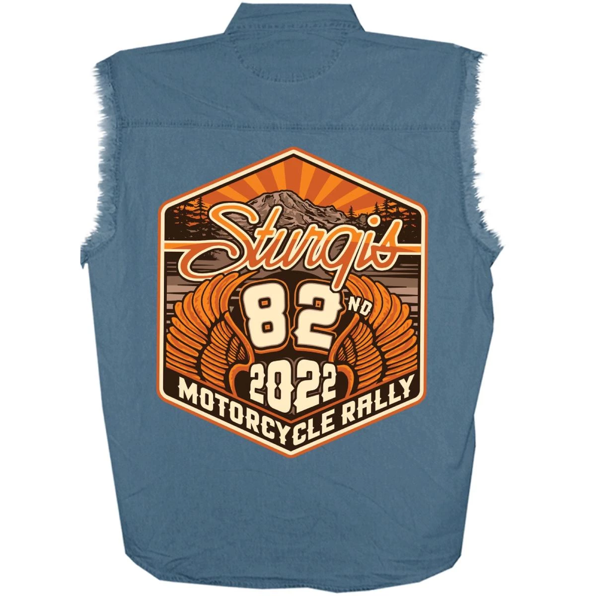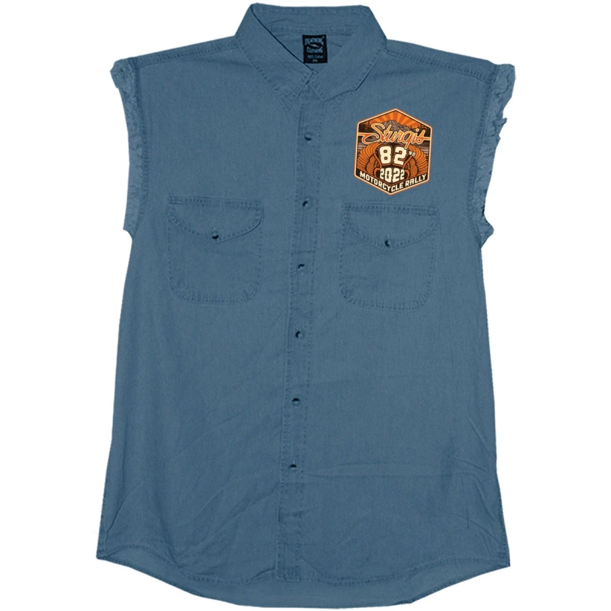 2022 Sturgis Motorcycle Rally SPB5042 Men’s Blue 82nd Logo Sleeveless Denim Shirt