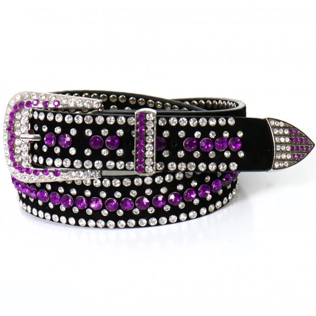 Purple and White Sparkling Rhinestones All Over A Black Leather Belt, Designed for The Lady Who Can Never Have Too Much “Bling” In Her Wardrobe.
