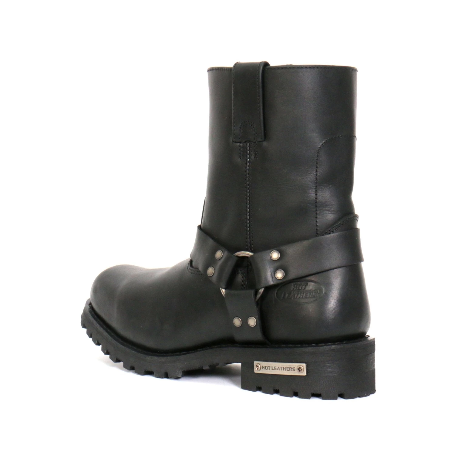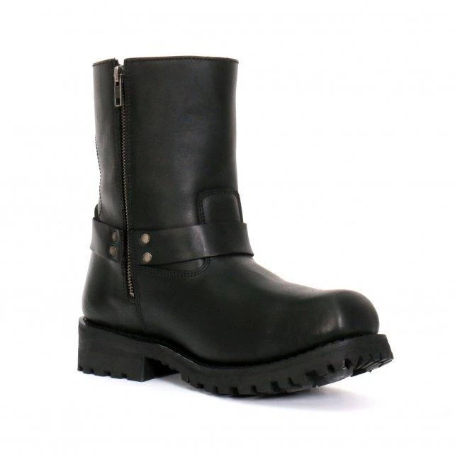 Hot Leathers BTM1004 Men’s Black 8-inch Short Harness Leather Boots with Lug Sole