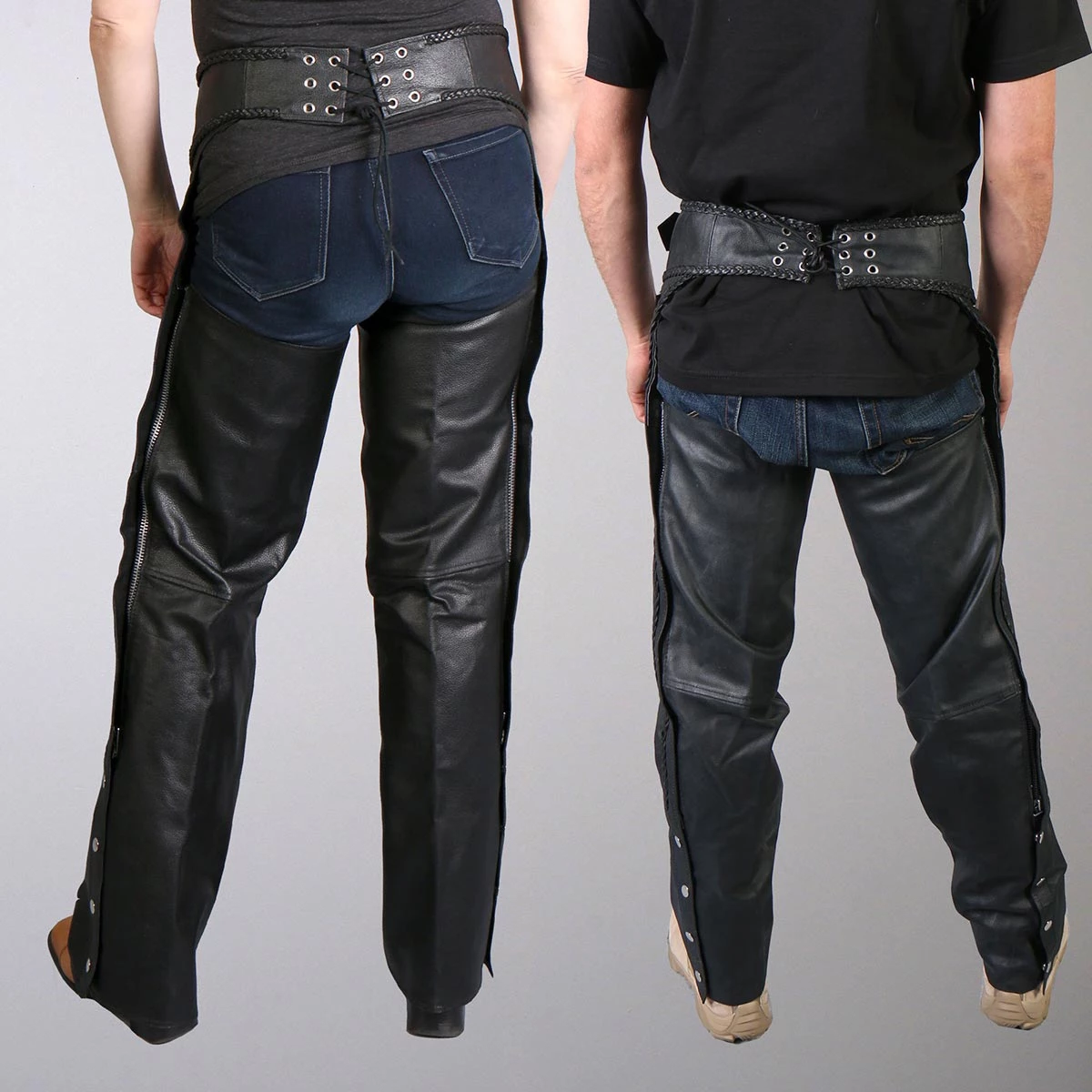 Hot Leathers CHM1003 Black Heavyweight Braided Uni-Sex Leather Chaps