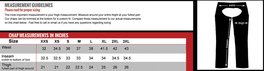 The Best Quality Unisex Leather Chaps Are Designed Using Top Grain Naked Leather. These Leather Chaps Are Fully Lined and Designed with Silver Hardware. Show Off Your Authentic Biker Style in A Pair Of These High Quality Chaps Today!