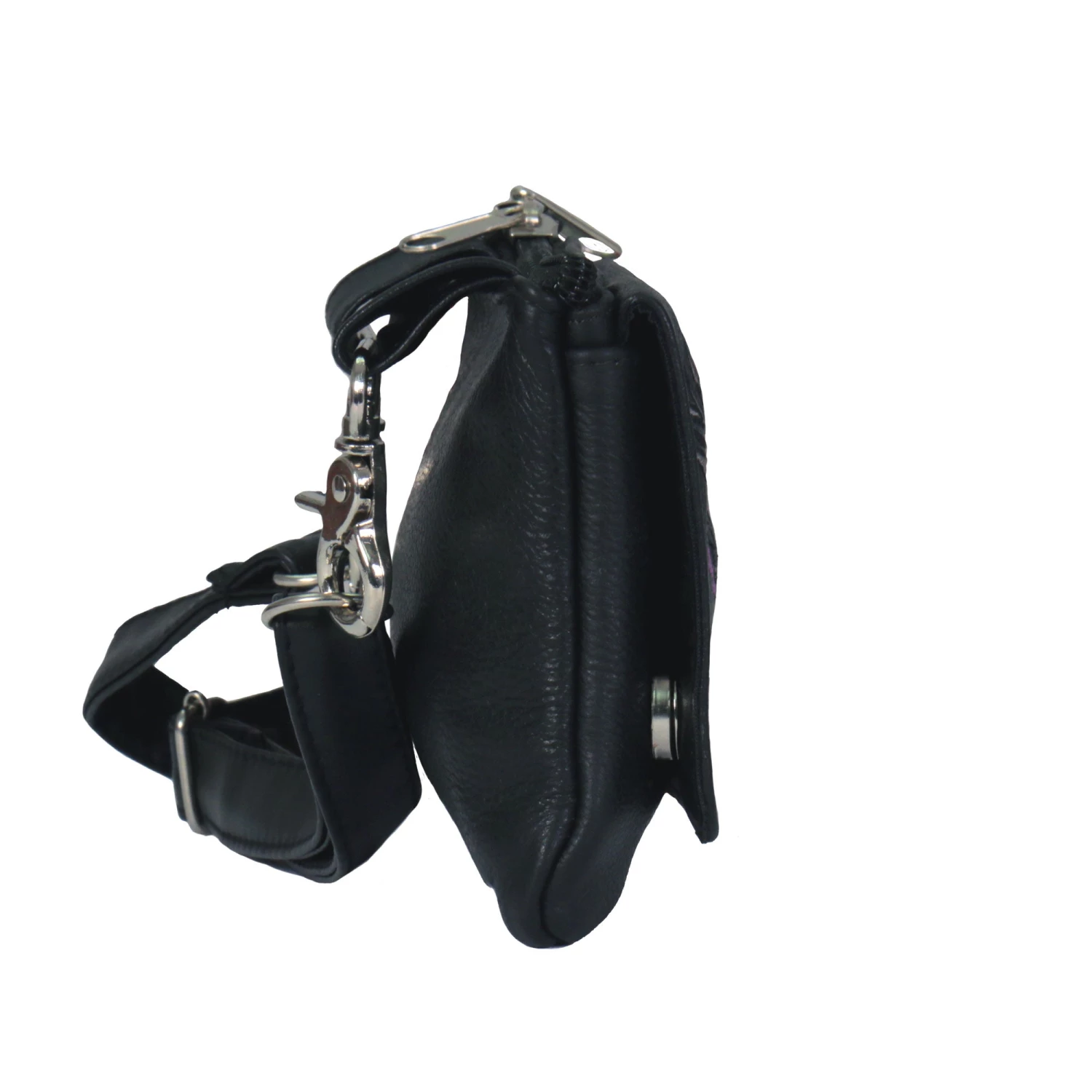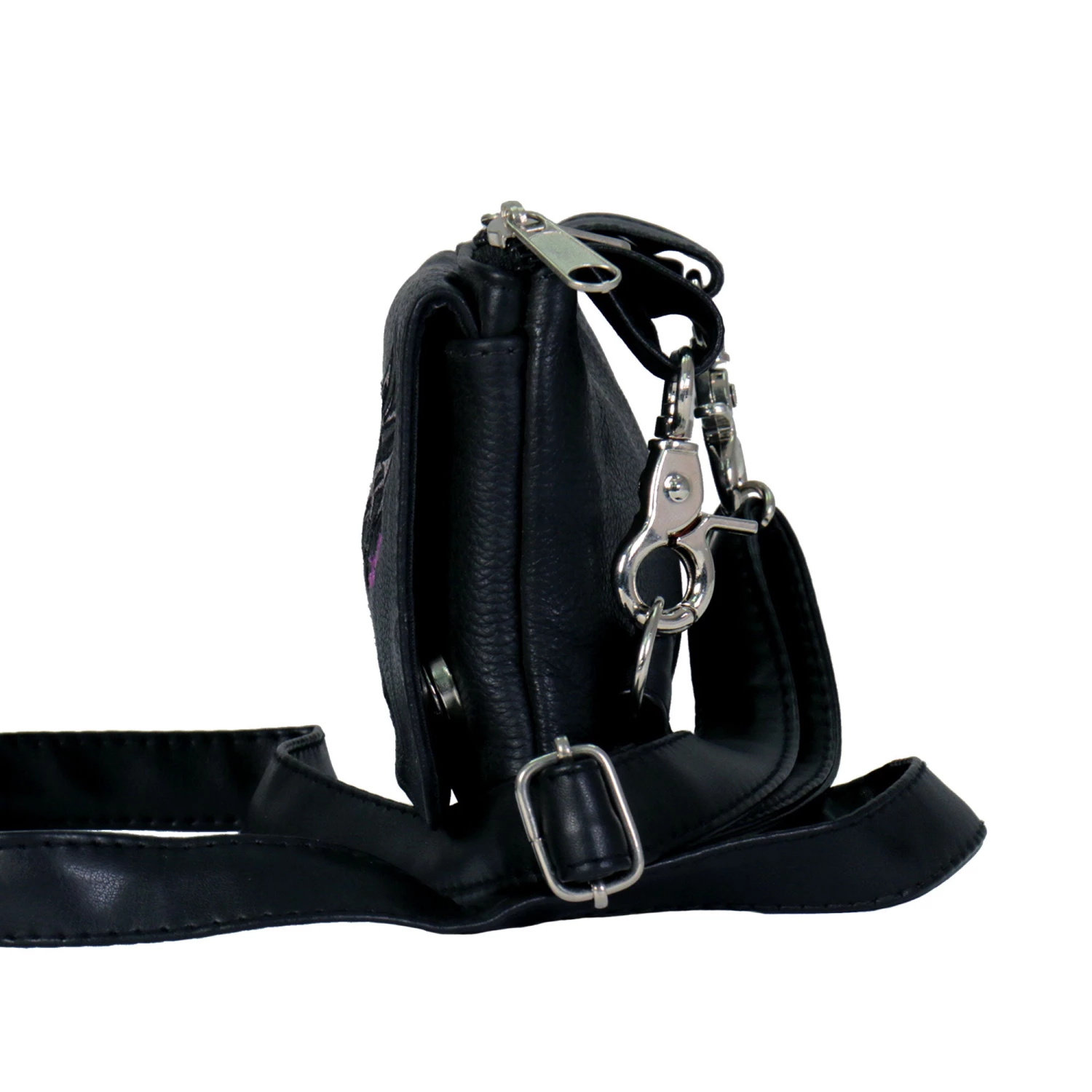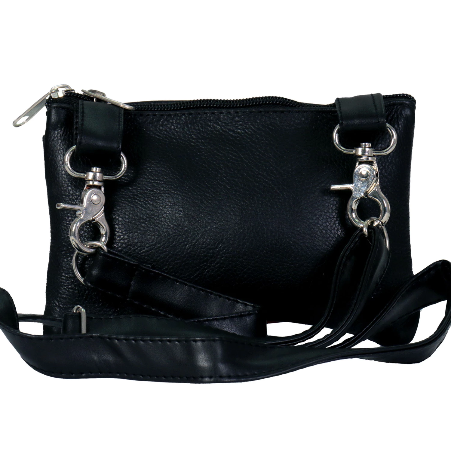 Hot Leathers ladies clip pouches attach easily and conveniently to your pants belt loops. These leather clip pouch purses are perfect for riding and for walking around. Made of genuine leather, this clip pouch has an embroidered tribal eagle on the front and comes with an adjustable strap.
