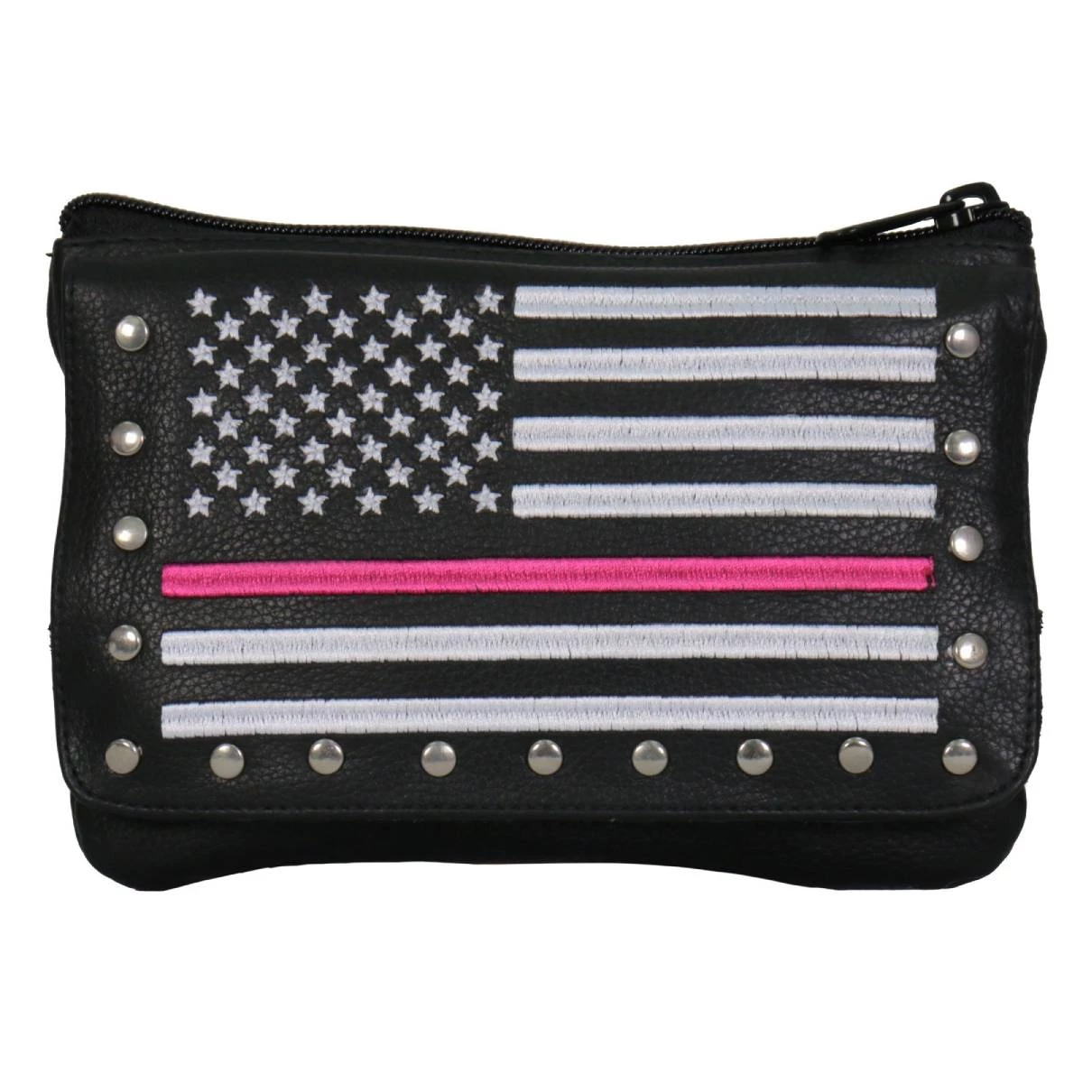 Hot Leathers CPE2102 Embroidered Clip Pouch Purse with Pink Line American Flag