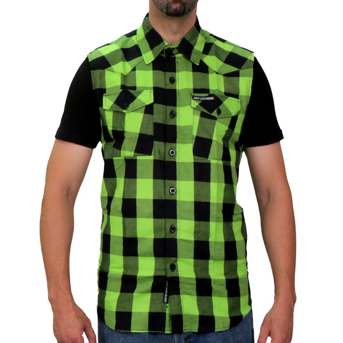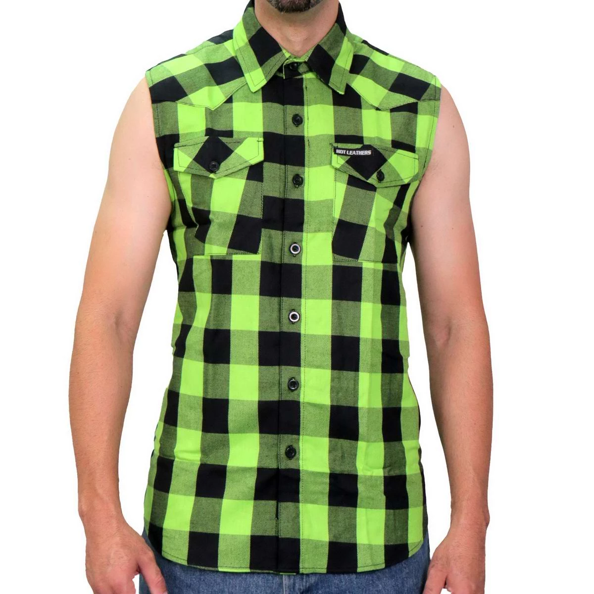 Hot Leathers FLM5002 Men’s Black and Green Sleeveless Cotton Flannel Shirt