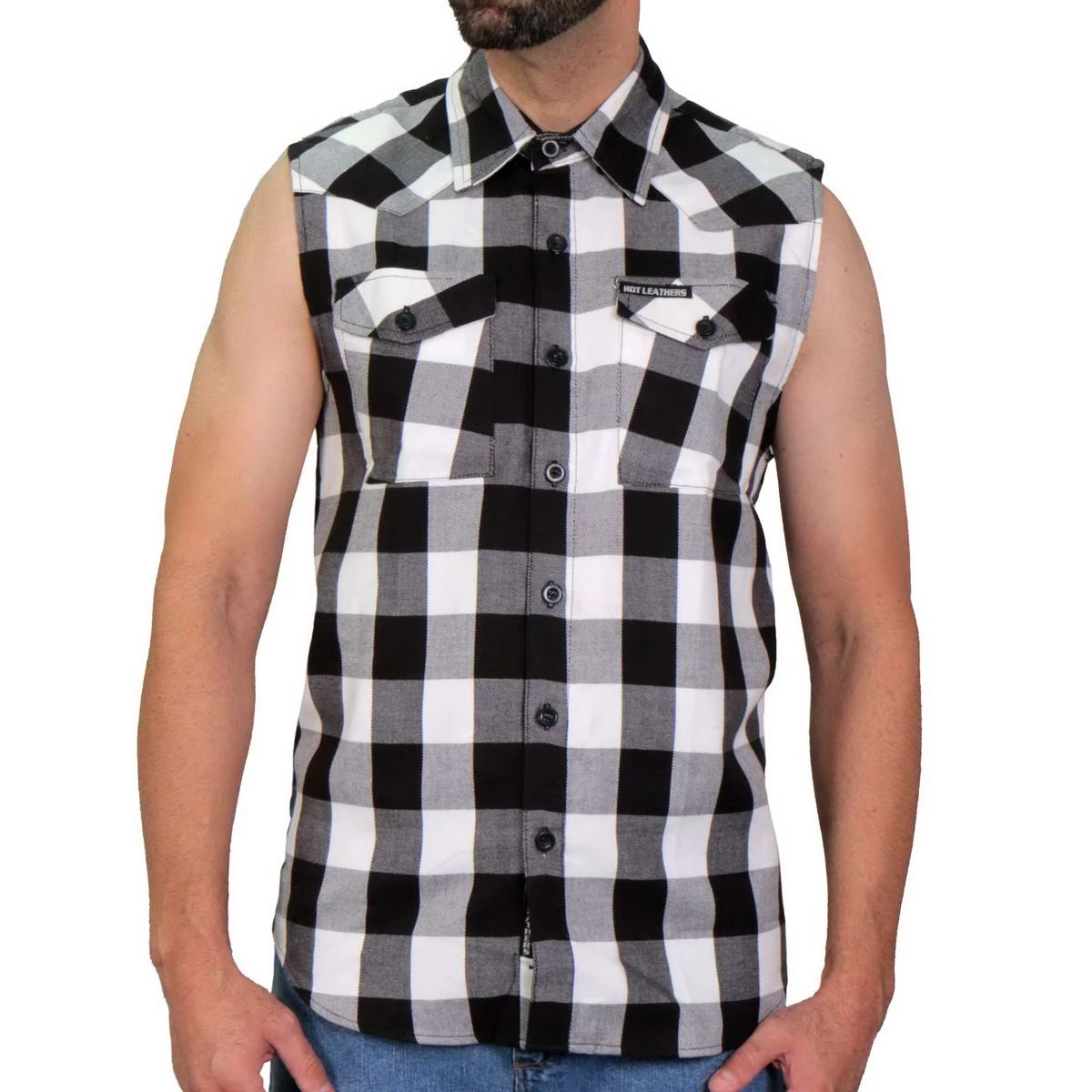 Hot Leathers FLM5004 Men’s Black and White Sleeveless Cotton Flannel Shirt