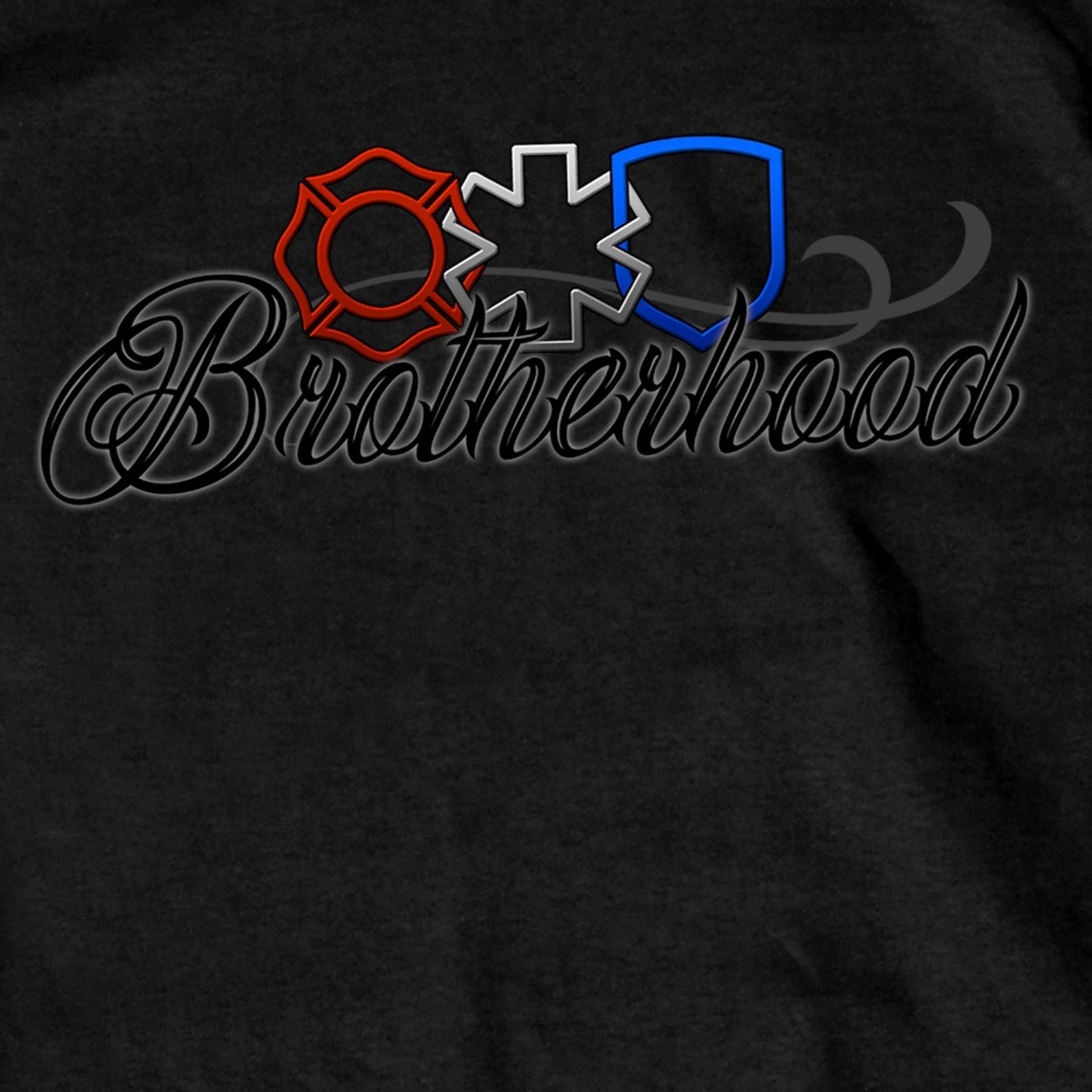 This Hot Leathers® Exclusive T-Shirt in black proudly supports all first responders with our “BROTHERHOOD OF FIRST RESPONDERS” t-shirt, with a logo on the left hand front chest area and the back. Get yours today!