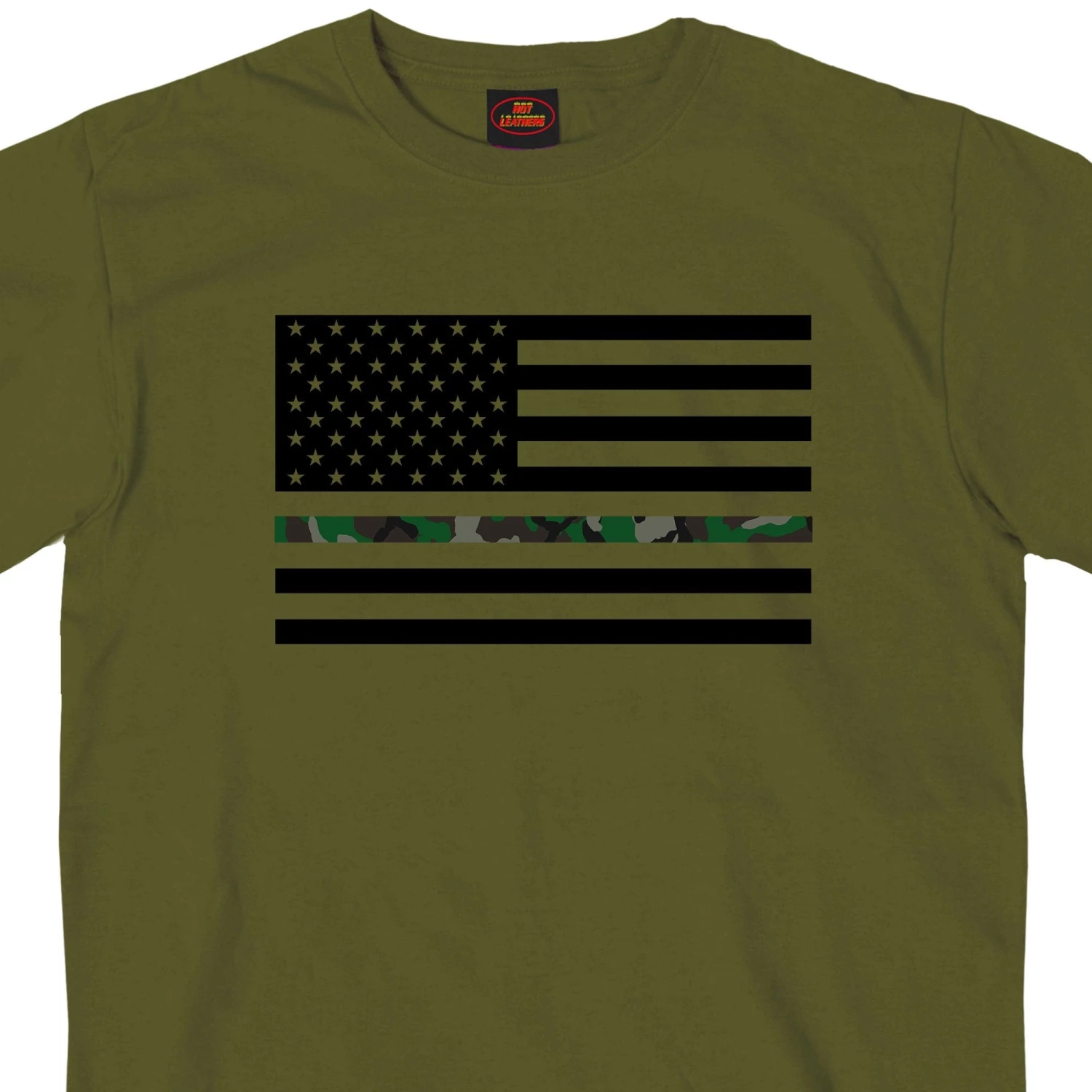 Hot Leathers GMS1444 Mens Thin Line Camo USA Flag Military Green T-Shirt
