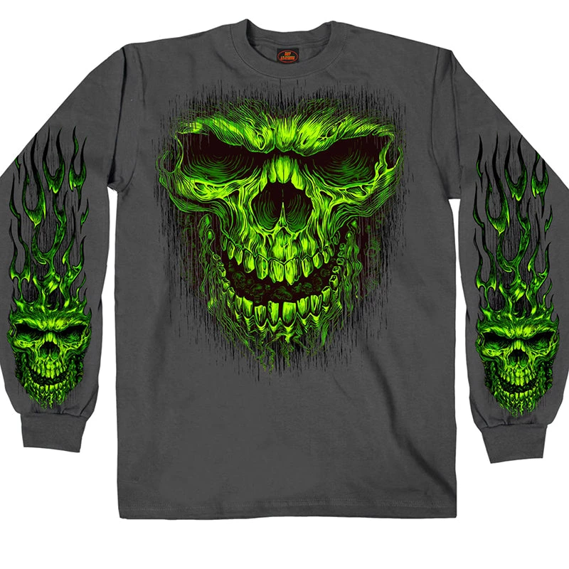 Hot Leathers GMS2457 Men’s Shredder Skull Long Sleeve Charcoal Shirt