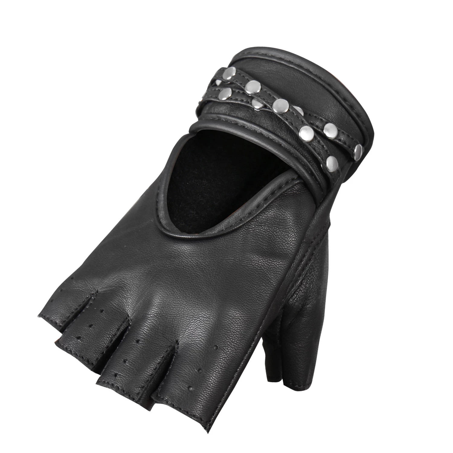 Hot Leathers GVL1010 Ladies Fingerless Gel Palm Gloves with Studs
