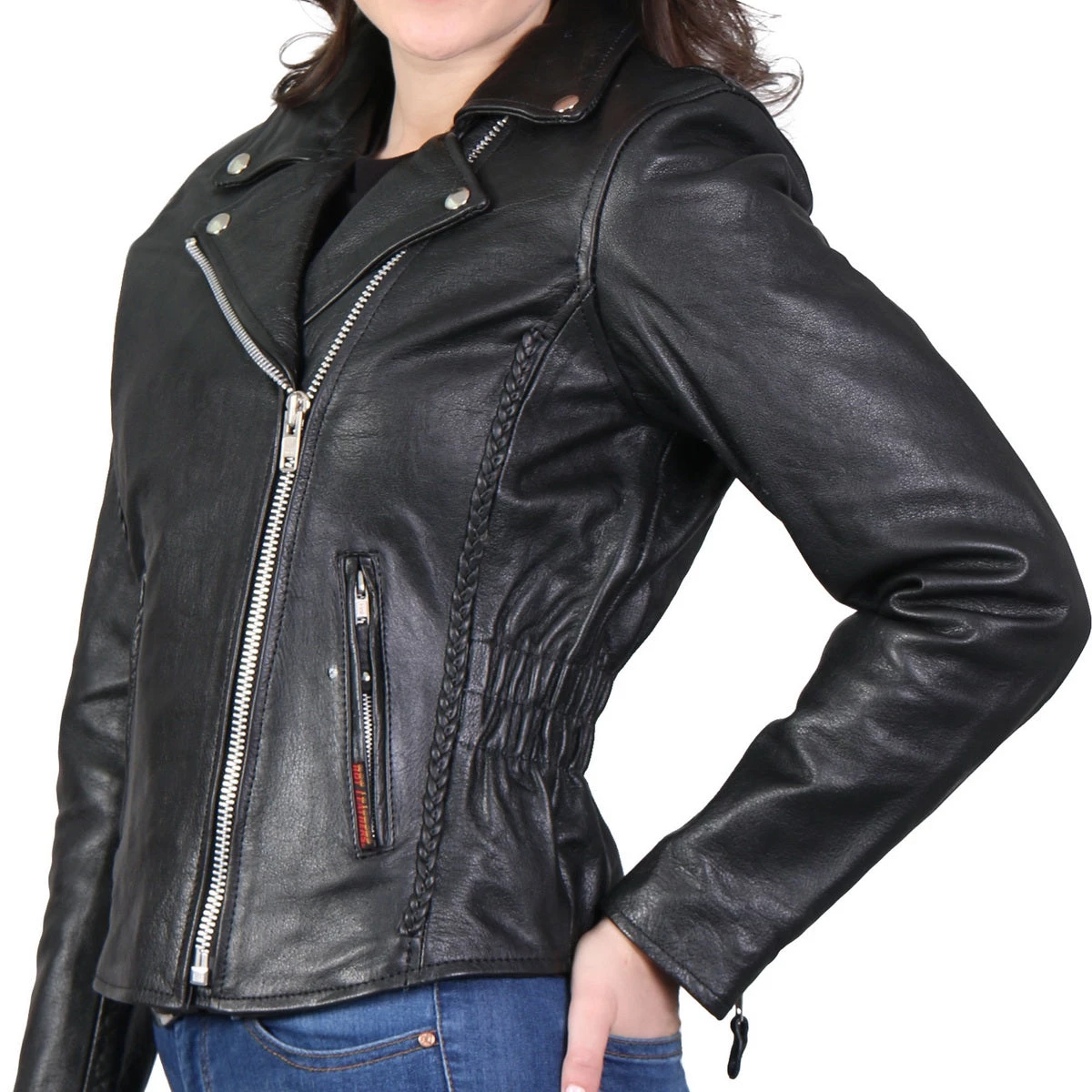 Hot Leathers JKL1009 Ladies Braided Motorcycle Leather Jacket