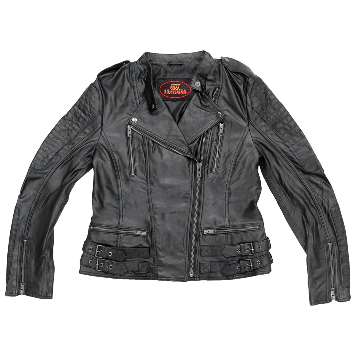 Hot Leathers JKL1030 Ladies Lightweight Black Leather Jacket with Side Buckles