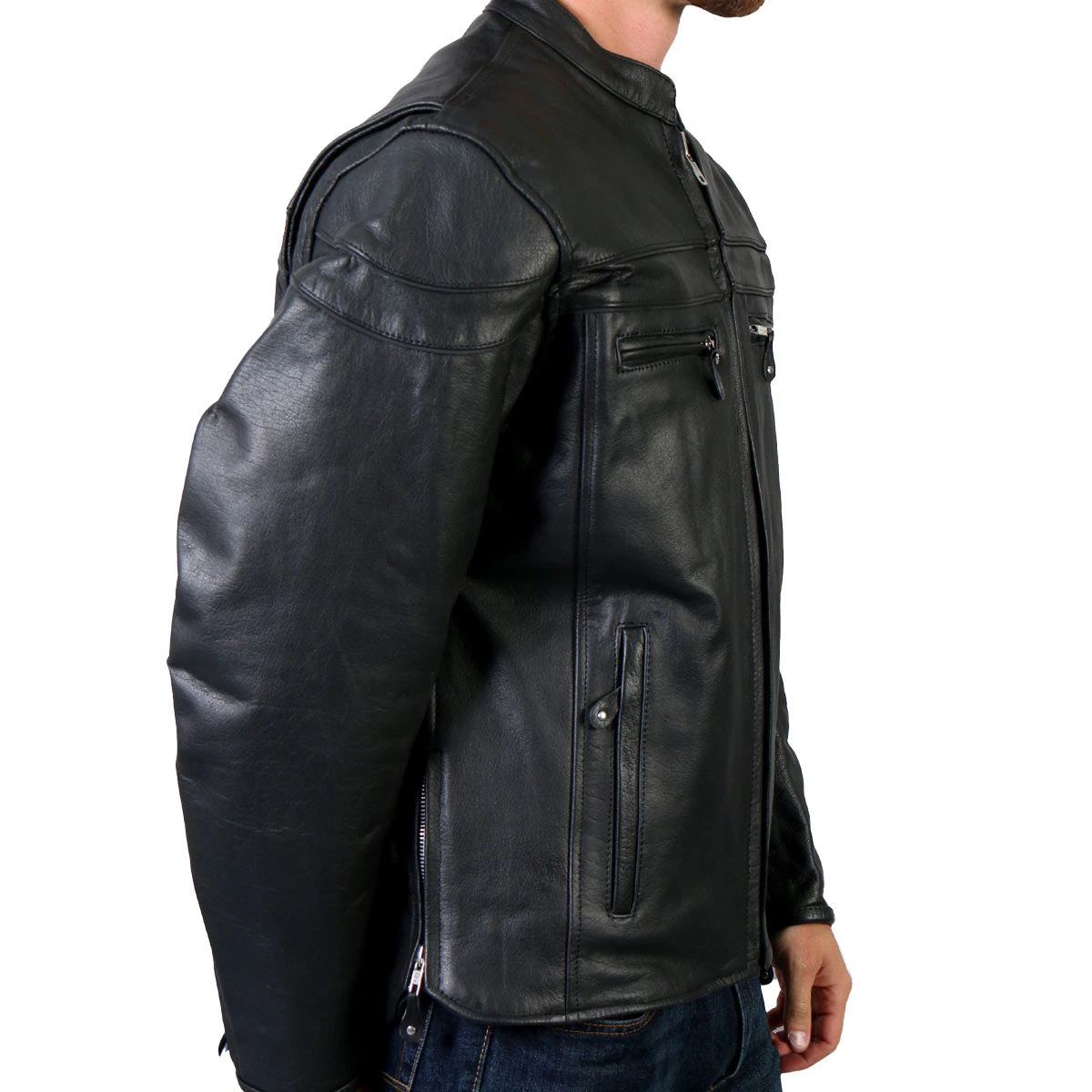 Hot Leathers JKM1011 Men’s Black Leather Motorcycle Jacket with Double Piping