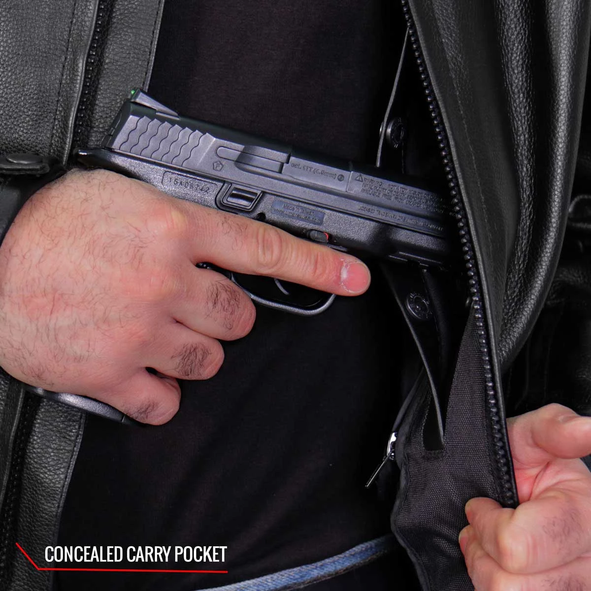 Hot Leathers JKM1021 Men’s Black Leather Carry and Conceal Vented Scooter Jacket