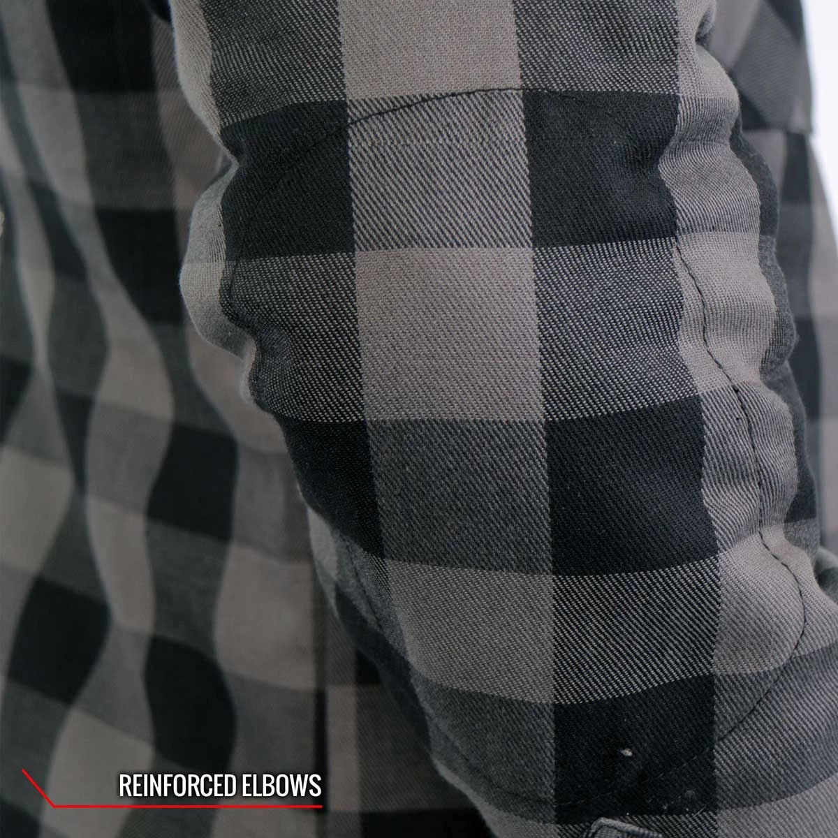 Hot Leathers JKM3203 Men’s Grey and Black Kevlar Reinforced Leather and Plaid Flannel Shirt