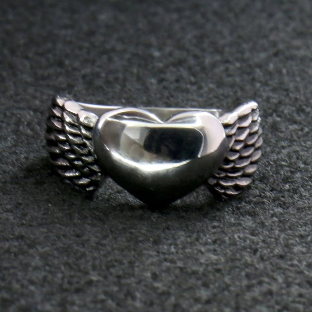 Hot Leathers JWR1101 Women’s Silver ‘Winged Heart’ Stainless-Steel Ring