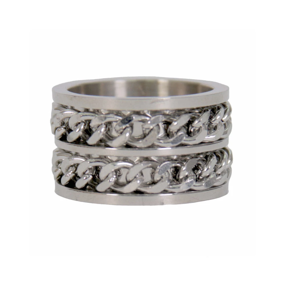 Hot Leathers JWR2143 Men’s Silver ‘Double Chain’ Stainless Steel Ring