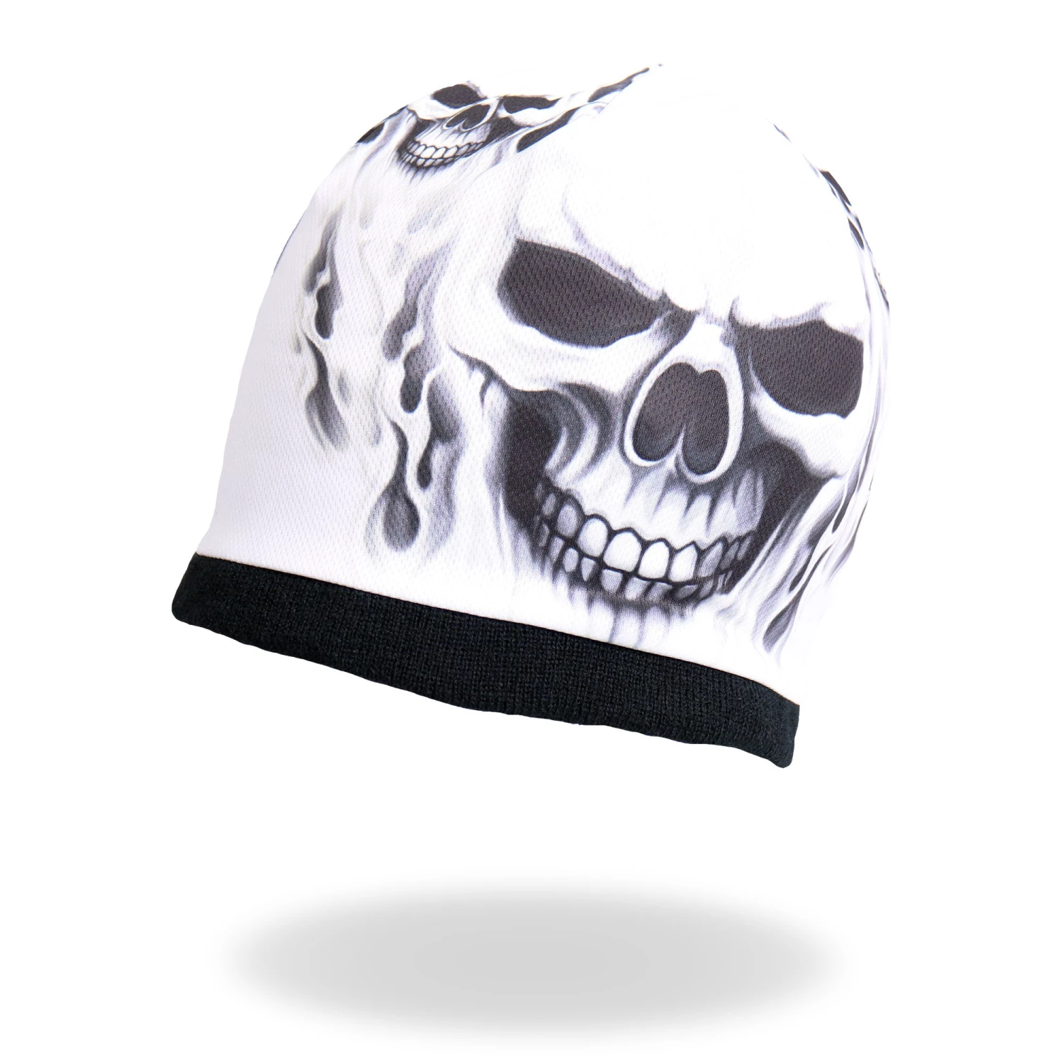 Soft beanies with an original Hot LeathersÂŽ sublimated design. The design is printed into the fabric to keep it looking brand new. The snug fit makes it comfortable to wear under your helmet while riding. Each beanie may vary slightly in appearance because of the crinkles and creases throughout the design that are created through the sublimation process.