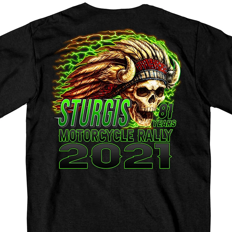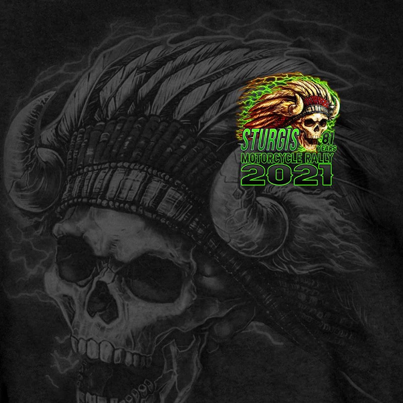 Official 2021 Sturgis SPM1940 Men’s Motorcycle Rally Web Exclusive Skeleton Chief Short Sleeve Black T-Shirt