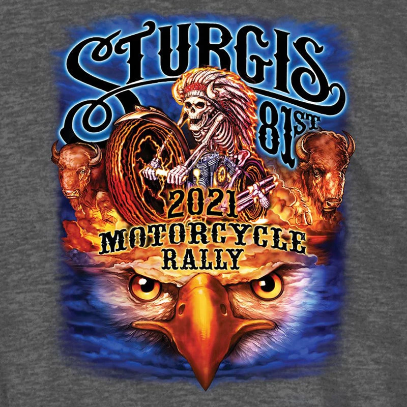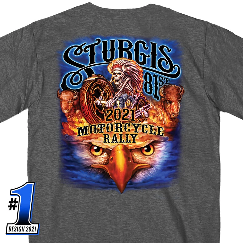 Official 2021 Sturgis SPM1942 Men’s Motorcycle Rally #1 Design American Spirit Heather Charcoal T-shirt