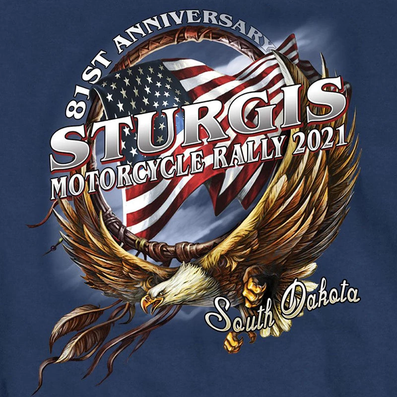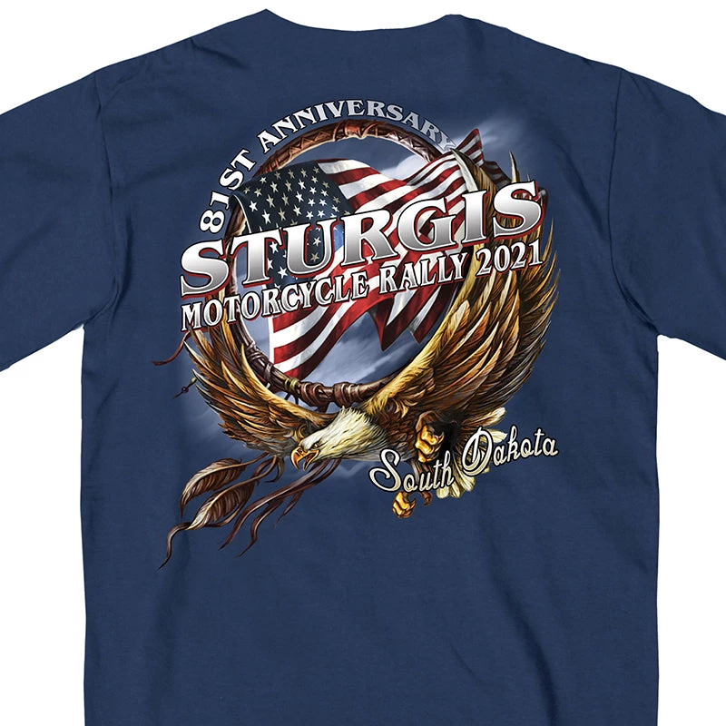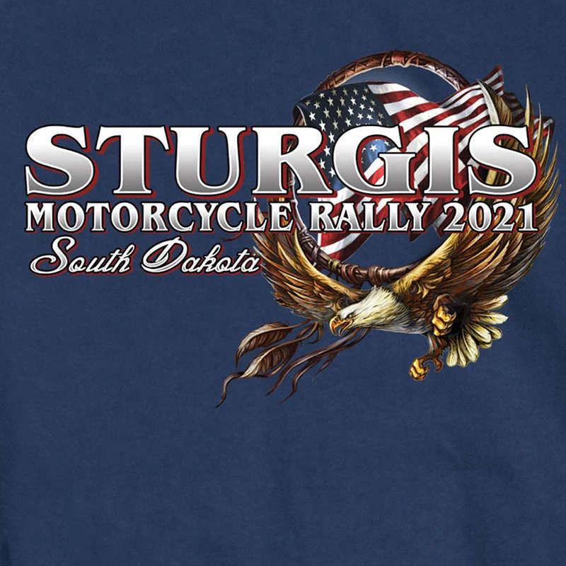 Official 2021 Sturgis SPM1974 Men’s Motorcycle Rally Hoop Eagle Metro Blue T-Shirt