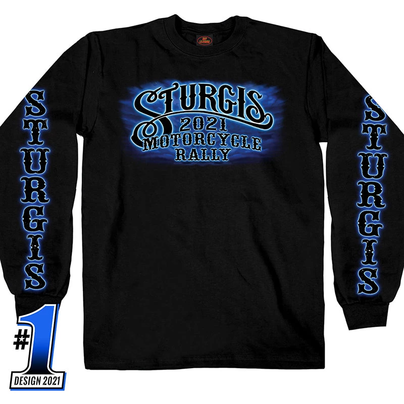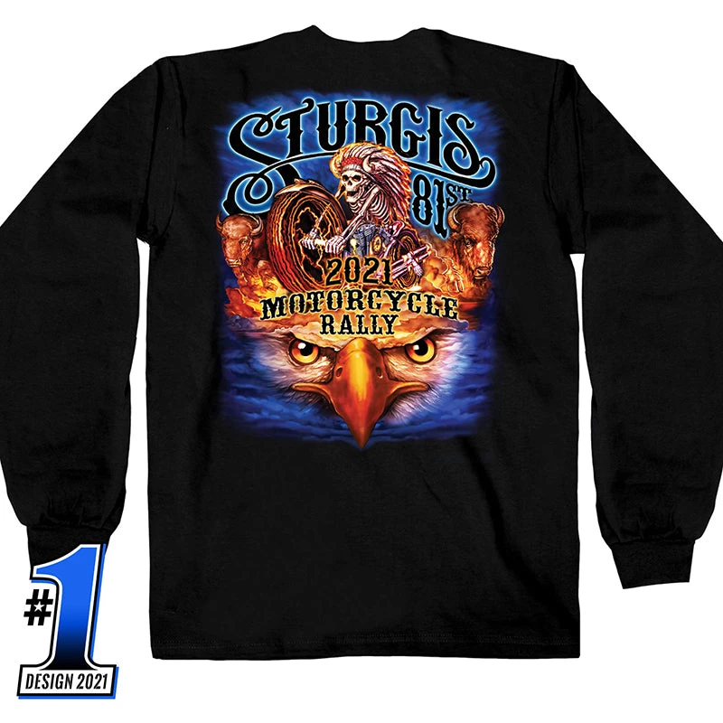 Official 2021 Sturgis SPM2941 Men’s Motorcycle Rally #1 Design American Spirit Long Sleeve Black Shirt