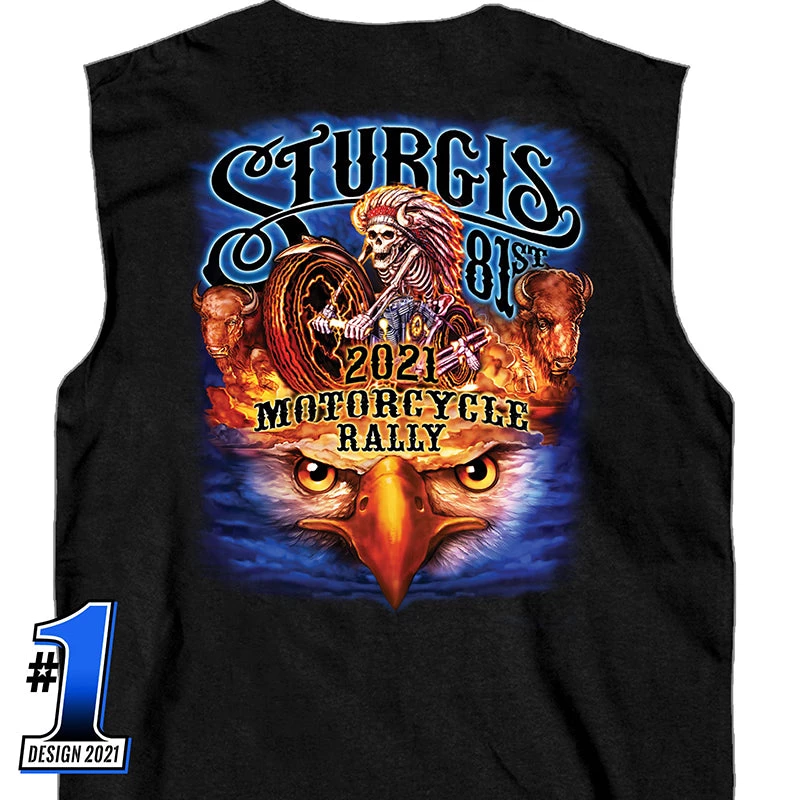 Official 2021 Sturgis SPM3941 Men’s Motorcycle Rally #1 Design American Spirit Shooter Sleeveless Black Shirt