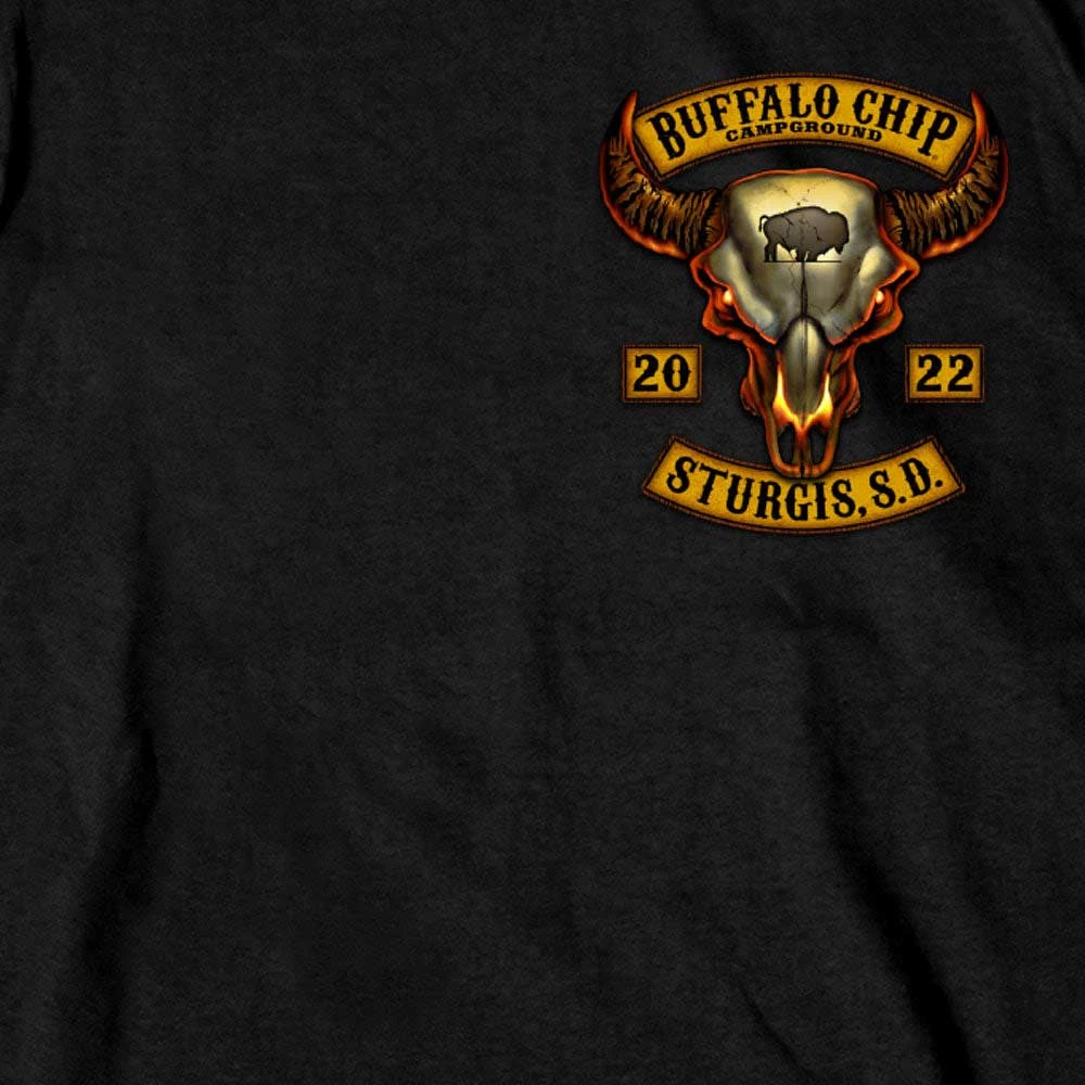 Official 2022 Sturgis BFM1422 Men’s Sturgis Buffalo Chip 2022 Rocker Design Black T-Shirt