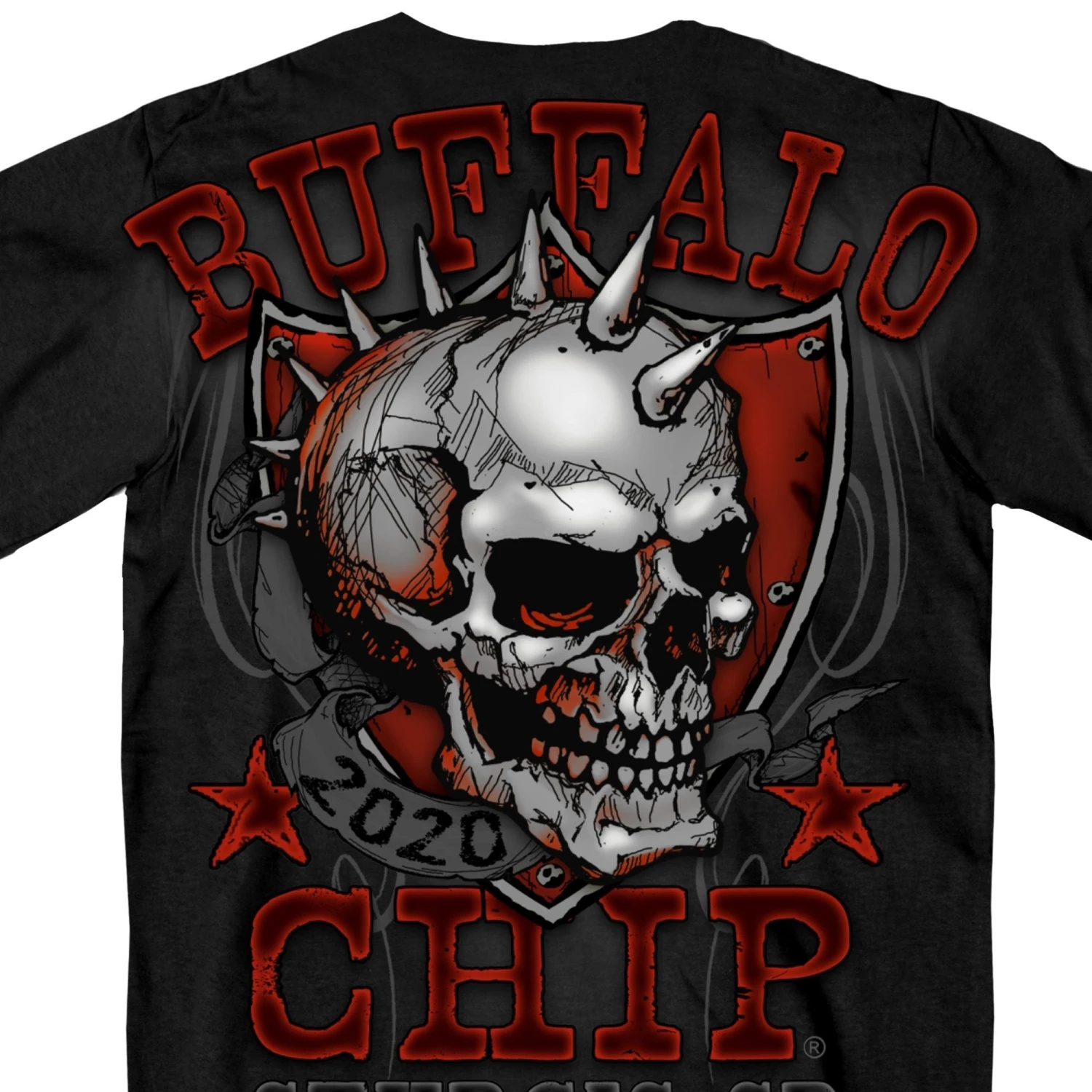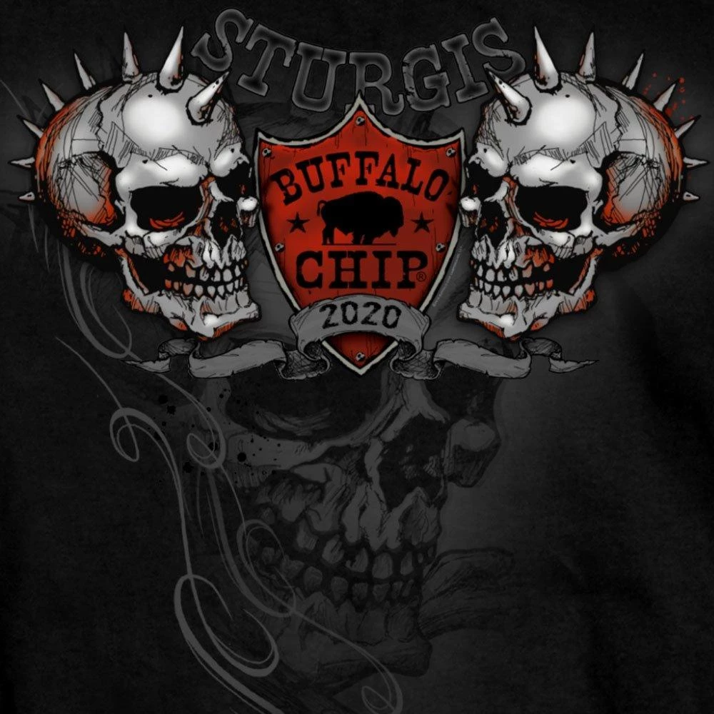 Official Sturgis BFM1362 Men’s 2020 Sturgis Buffalo Chip Spike Skull Black T-Shirt
